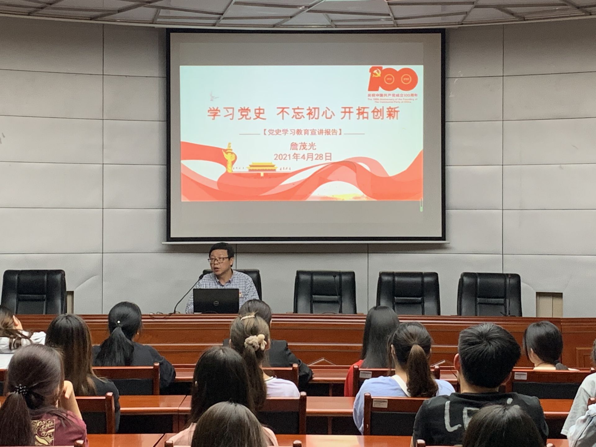 根据学院党委的统一部署,4月28日至5月7日,学院党史学习教育宣讲团成员詹茂光、陈婷、黄林妹、虞惠明深入设计系、管理系为2019级、2020级全体学生作《学习党史 不忘初心 开拓创新》专题宣讲。