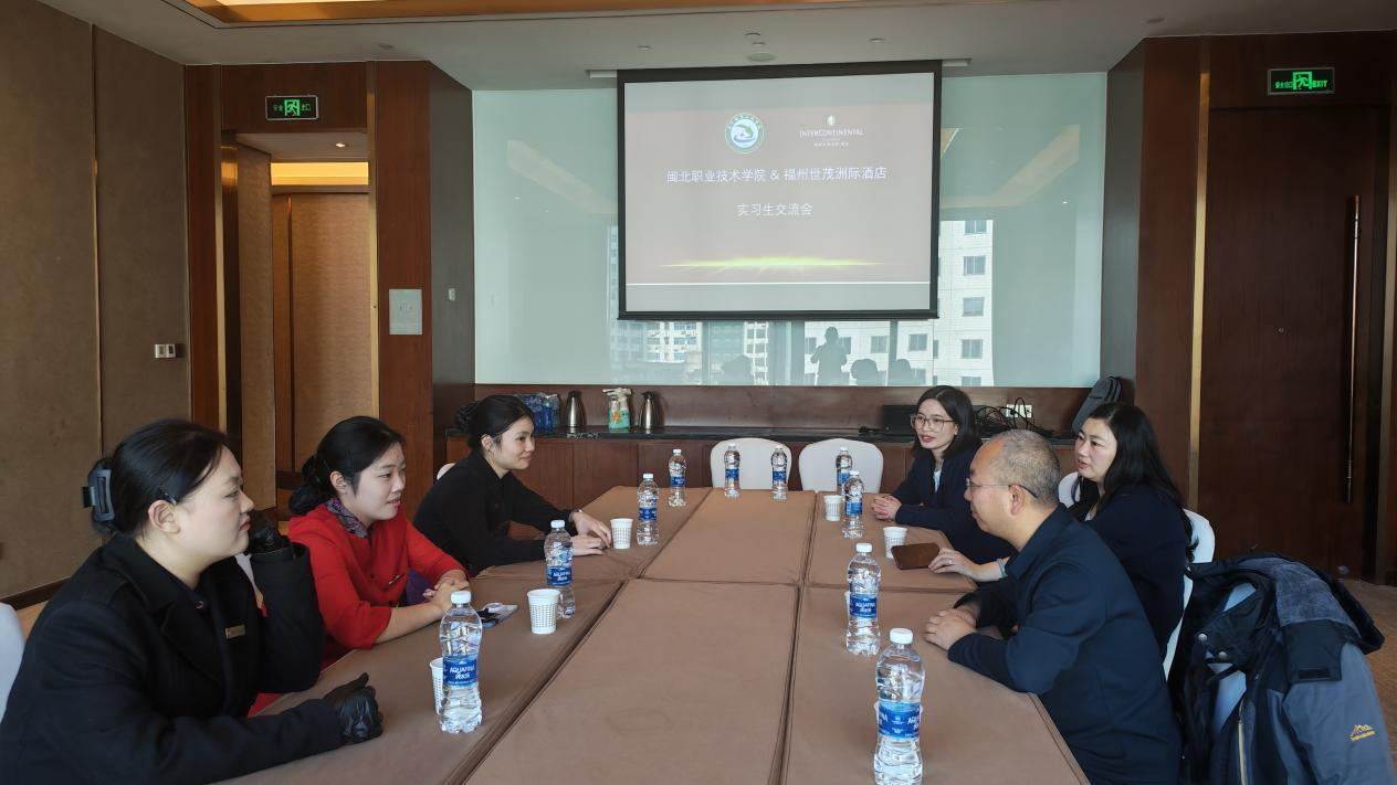 随后,白雁飞一行分别前往福州西湖大酒店探望 2023 级旅游管理(三年制)林薇同学;赴福州世茂酒店慰问 2021 级旅游管理(五年制)、2023 级旅游管理(三年制)3 名实习生;前往外贸中心悦华酒店走访 2023 级旅游管理(五年制)5 名实习生及 2023 级旅游管理(三年制)4 名实习生,每到一处都与同学们深入交流,充分了解实习实况。