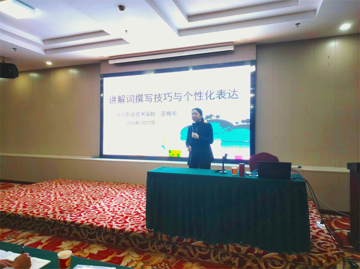 2026年1月27日下午,学院红匠文旅技术服务团队、旅游管理专业庄梅华老师应邀为延平区高素质农民培训班开展专题讲座,主题为《讲解词撰写技巧与个性化表达》。此次课程通过案例解析、现场演练等互动教学方式,内容紧密结合农旅实践,旨在提升学员讲解词撰写水平和语言表达能力。参训学员纷纷表示,课程内容扎实、实用性强,对实际工作有很好的指导和启发作用。
