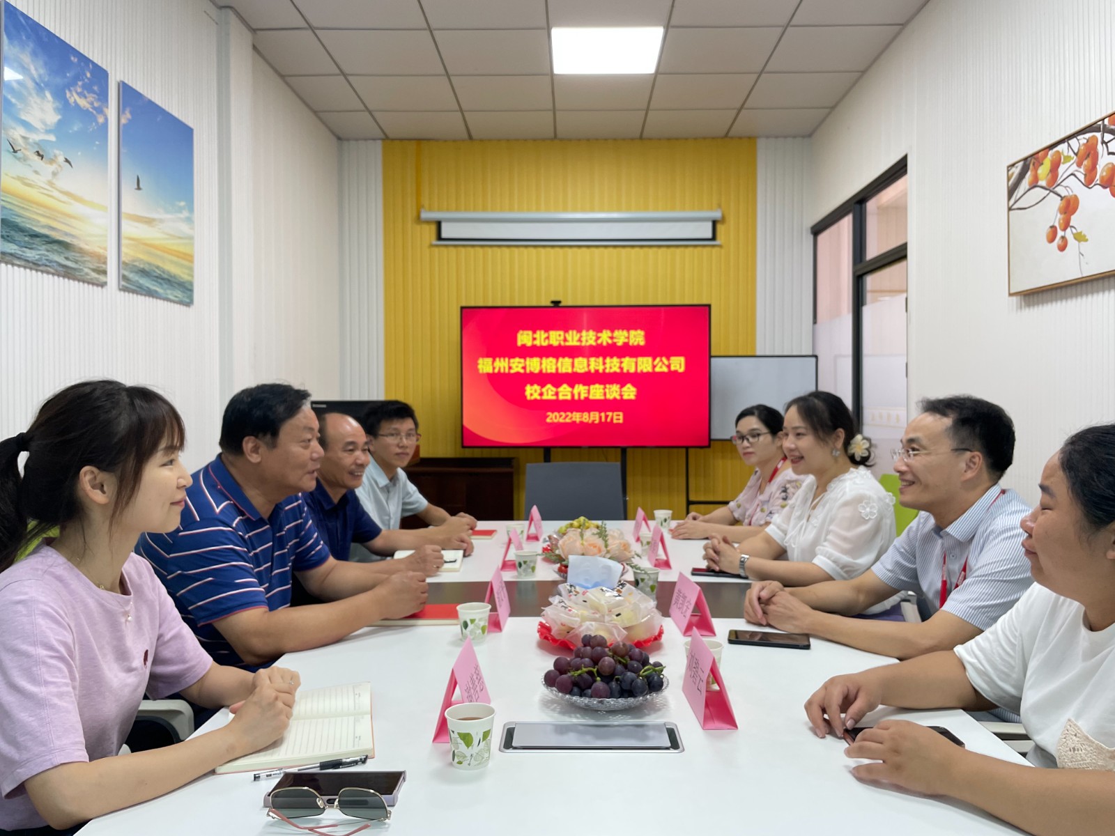 福州安博榕信息科技有限公司董事长黄凯宏、总经理陈黎黎对调研组一行的到来表示欢迎,校企双方围绕安博榕产业学院建设、软件技术专业人才培养和学生实训、实习工作展开了深入的探讨。期间,调研组一行还看望了在企业综合实训的学生,了解实训环境和工作内容,谢友平书记鼓励同学们要好好学习,不断提升专业技能。