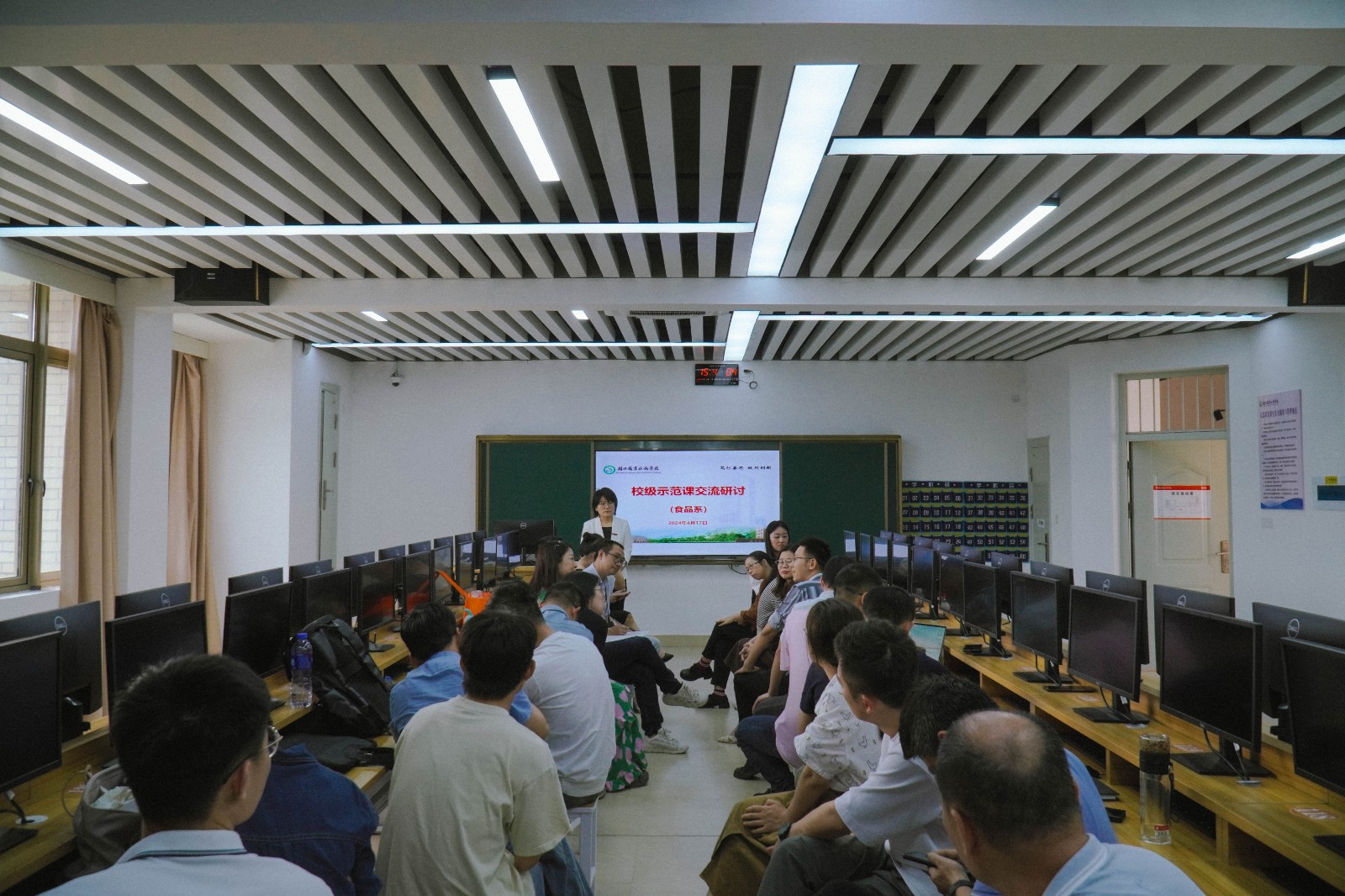 为充分发挥优秀教师的带头与示范作用,搭建教师相互交流学习平台,促进青年教师的快速成长,引领新入职教师的课堂教学,提高学校教学质量。2024年4月18日下午,学院在3号教学楼501智慧教室及学术报告厅举办校级示范课教学观摩活动,学院党委副书记、院长叶世森、教务处处长范民、各系部党政负责人、院系两级督导员、专任教师、兼职兼课教师等共计120余人现场观摩直播课堂。