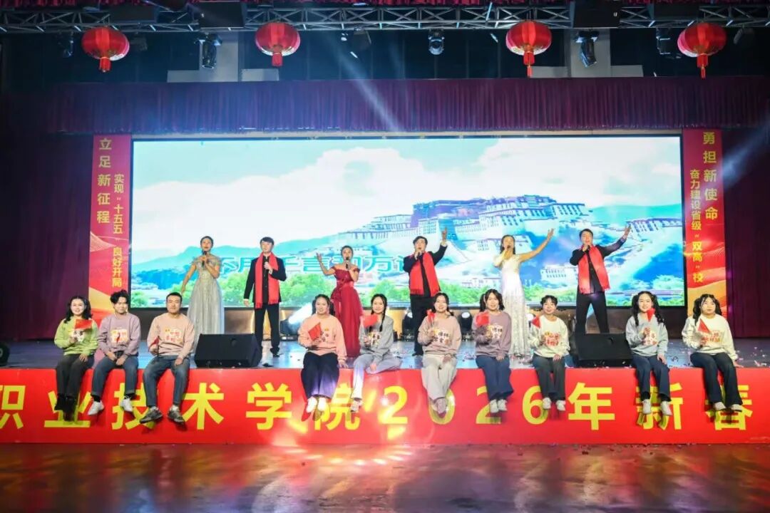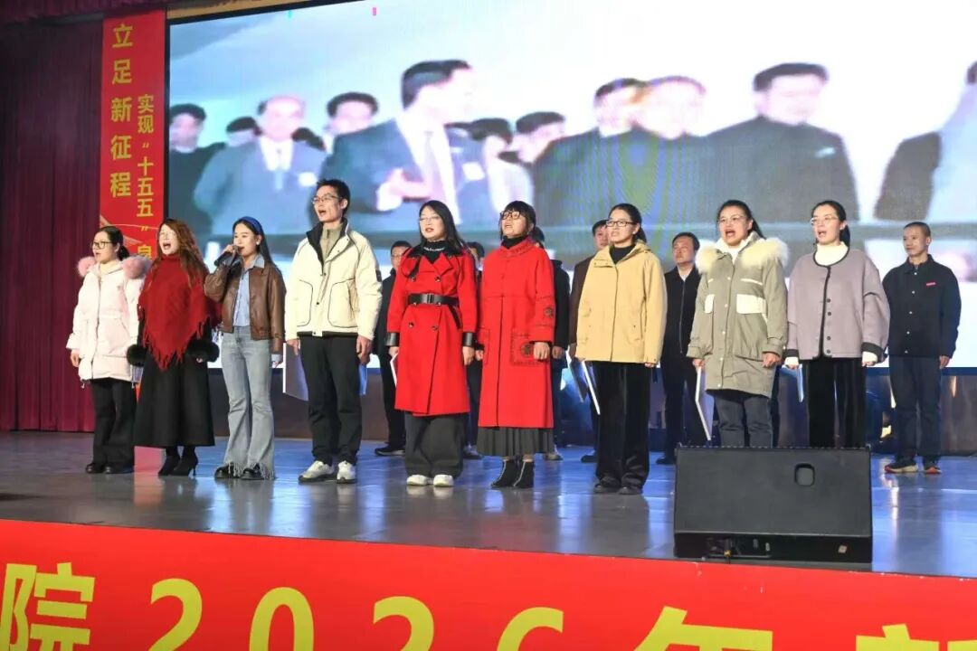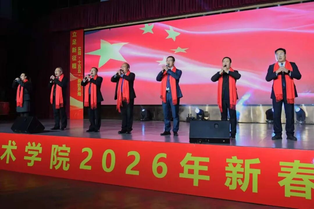 学院党委书记张雄致新春贺词,他指出,2025年,学院坚持以习近平新时代中国特色社会主义思想为指导,牢记为党育人、为国育才初心使命,凝心聚力,潜心育人,各项工作取得了令人可喜的成绩。2026年是“十五五”开局之年,是教育强国建设三年行动计划承上启下的关键之年,也是学院乘势而上、再创辉煌的关键之年,希望全体教职员工心往一处想、劲往一处使,以坚定的信念、昂扬的斗志、务实的作风,同心同德、携手同行,为加快建设办学特色鲜明的区域高水平职业院校作出更大的贡献。