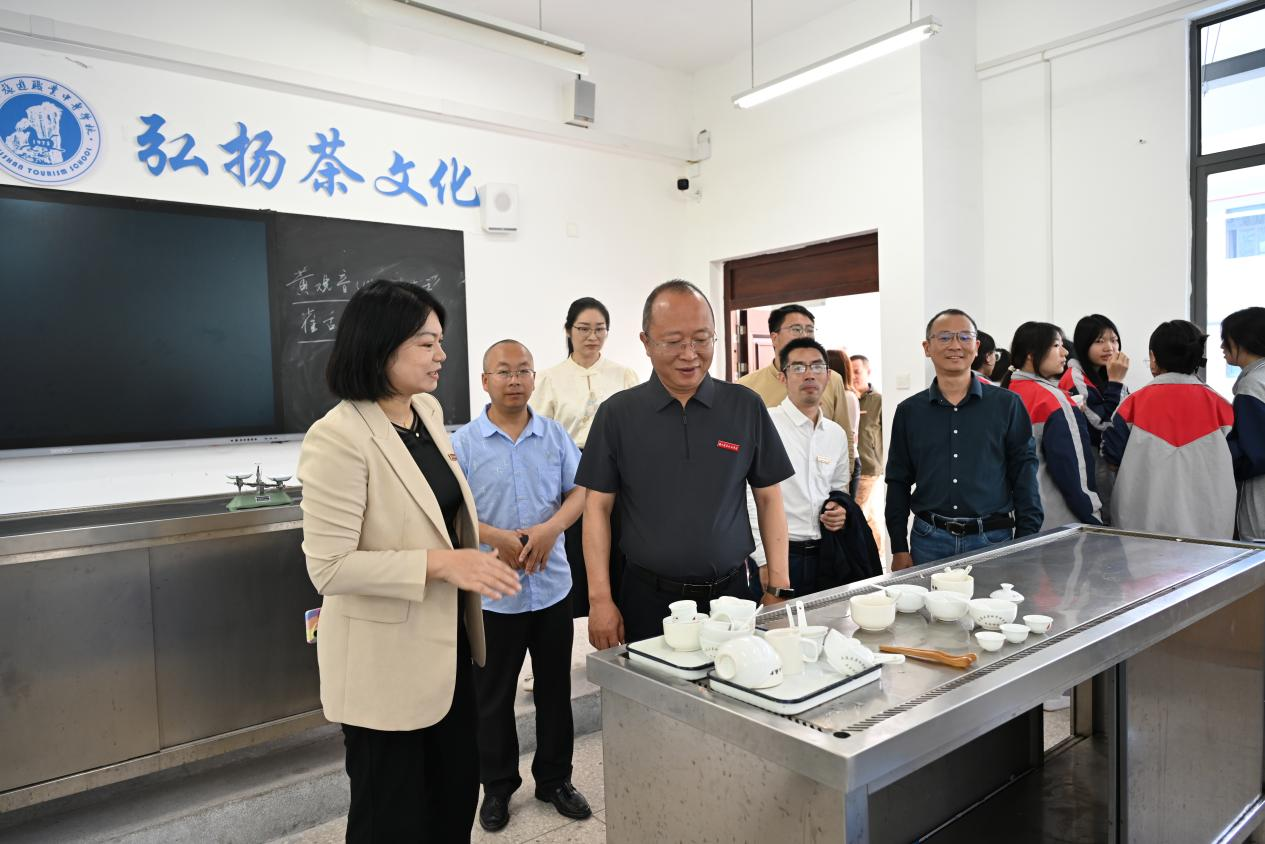 在武夷山旅游职业中专学校,武夷山市教育局党组书记、局长李辉,武夷山旅游职业中专学校党总支书记林谋清陪同调研。调研组实地参观烹饪工艺与营养、茶艺与茶文化专业实训场馆,详细了解专业办学特色、实训教学体系与育人成效,并围绕专业共建、中高职衔接、技能人才培育、教育资源互通共享等内容开展深入交流,共谋合作发展路径。