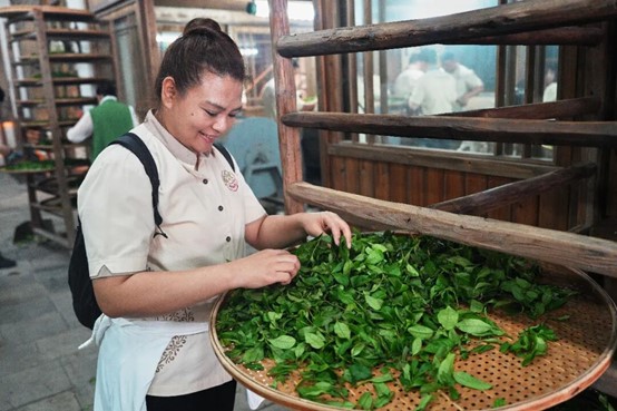 随后,学员们前往武夷山开展茶文化实践研学活动,现场参与开山仪式,亲身实践分青、萎凋等工序,并与非遗传承人围绕手工制茶技艺、专业审评、焙火工艺等内容开展深入交流。期间,学员们还先后走访天岩茶厂、骏德红茶文化体验交流中心及武夷星茶业有限公司,全方位、沉浸式感受武夷茶文化的深厚底蕴,了解当地茶产业发展情况。