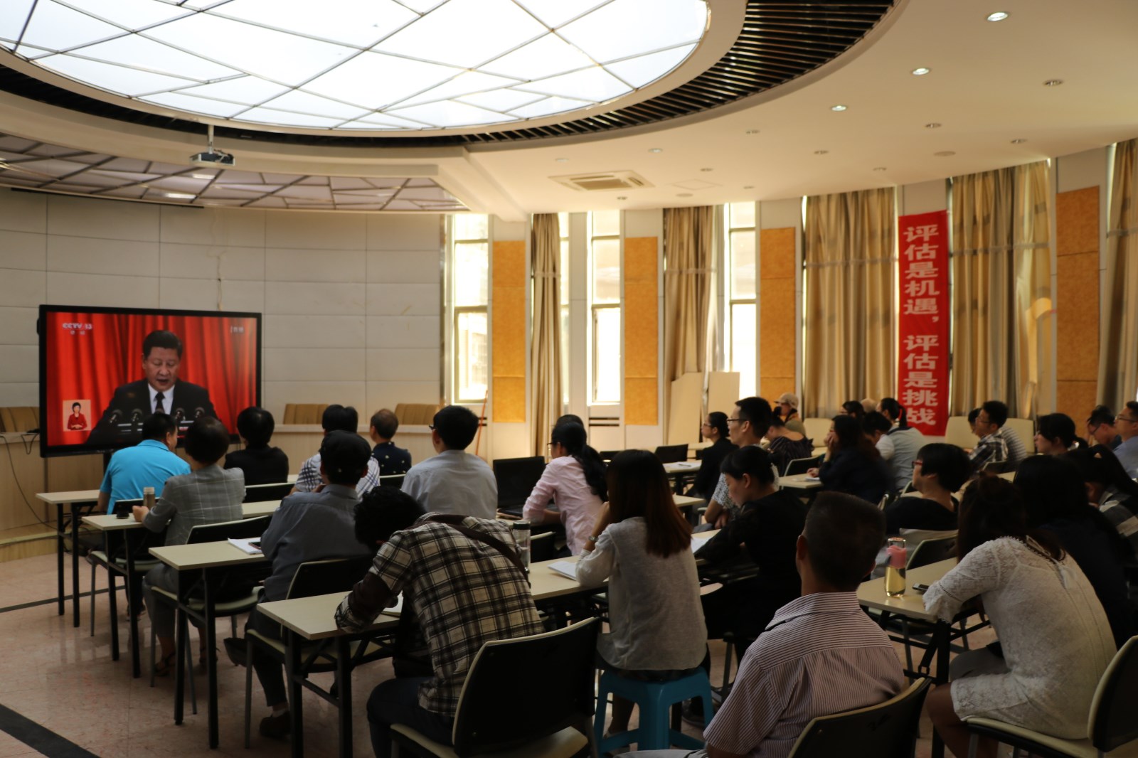 会议高度概括和明确提出新时代中国特色社会主义思想,这是马克思主义中国化最新理论成果。观看期间,大家喜悦之情溢于言表,聚精会神地听着来自党中央的声音,直观地体会了共产党领导下的新中国在新时期、新阶段所取得的辉煌成绩。