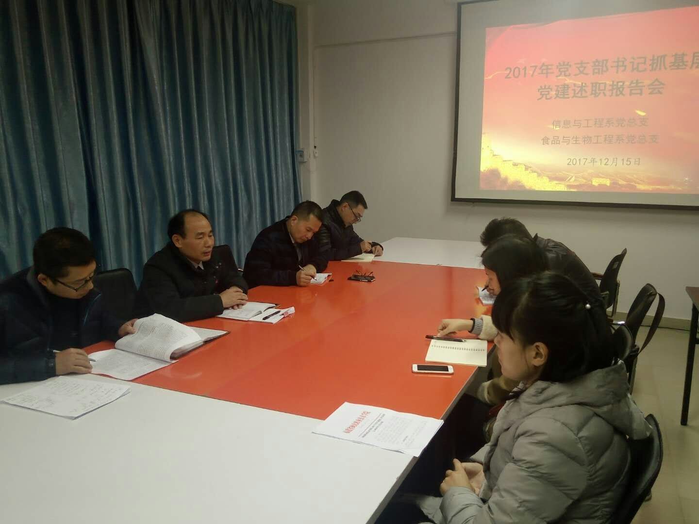 12月15日下午,信息与工程系、食品与生物工程系召开了2017年党支部书记抓基层党建述职报告会议,总支委员、各支部委员参加了会议。会上,胡建辉、鞠璐宁、黄妍三位党支部书记逐一进行了述职。系副书记、主任张金良对三位同志的述职进行了点评,他认为,在今年的二轮评估工作中,各支部书记发挥了很大的作用,亮点很多,成绩突出,切实起了先锋模范带头作用,希望他们在今后的工作中取得更大的成绩。