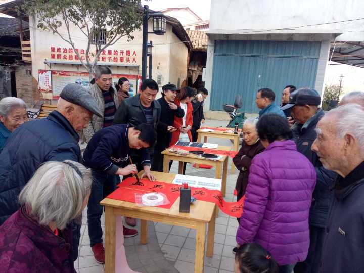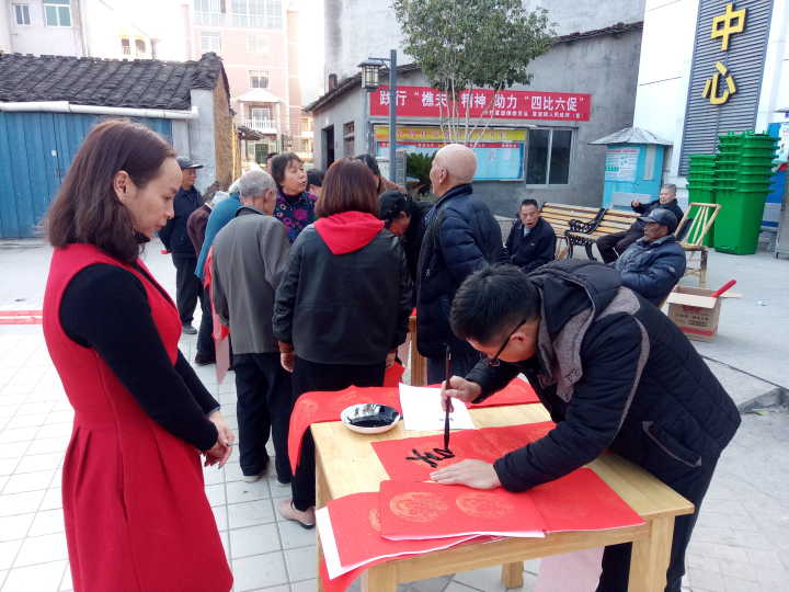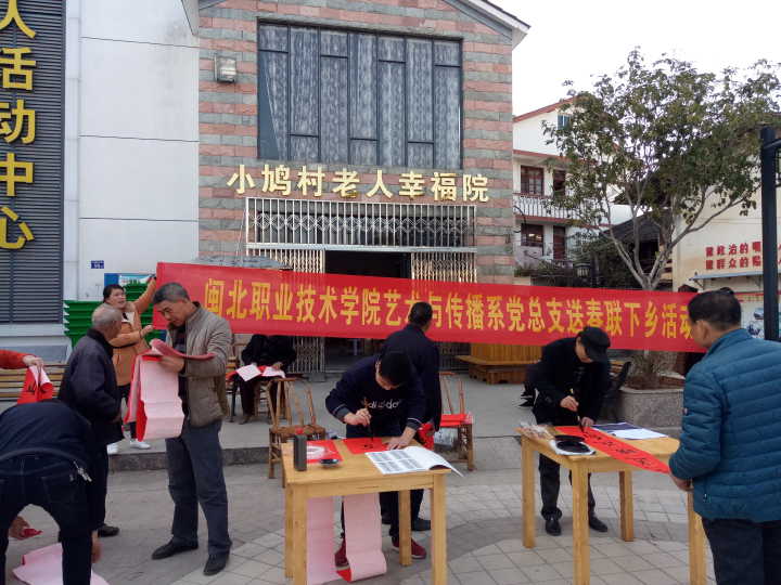 2018年1月18日下午,艺术与传播系党总支组织我院书法爱好者到夏道镇小鸠村开展义务送春联活动。本次活动共为当地村民义务书写春联近百幅,受到村民的热烈欢迎和感谢。我系党总支将充分发挥自身文化艺术资源优势,开展文化下乡活动,为社会主义新农村建设作出应有的贡献。