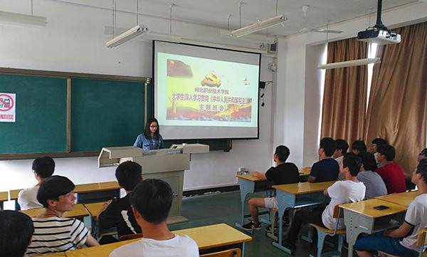 另一方面,各系党政和共青团组织也针对大学生群体开展了“学宪法讲宪法”的主题班会活动,各系各班以学工处统一下发的宪法宣讲课件、上级有关文件和宣讲视频,进一步明确了“弘扬宪法精神,建设法治中国”的意义,对宪法的法律地位、构成、基本原则、公民的基本权利等内容进行集中教育。在30多场的主题班会活动中,同学们进一步认识到应当于日常生活中养成遵守宪法的习惯,树立宪法意识,弘扬宪法精神,自觉维护宪法尊严,做一名知法、懂法、守法的大学生。