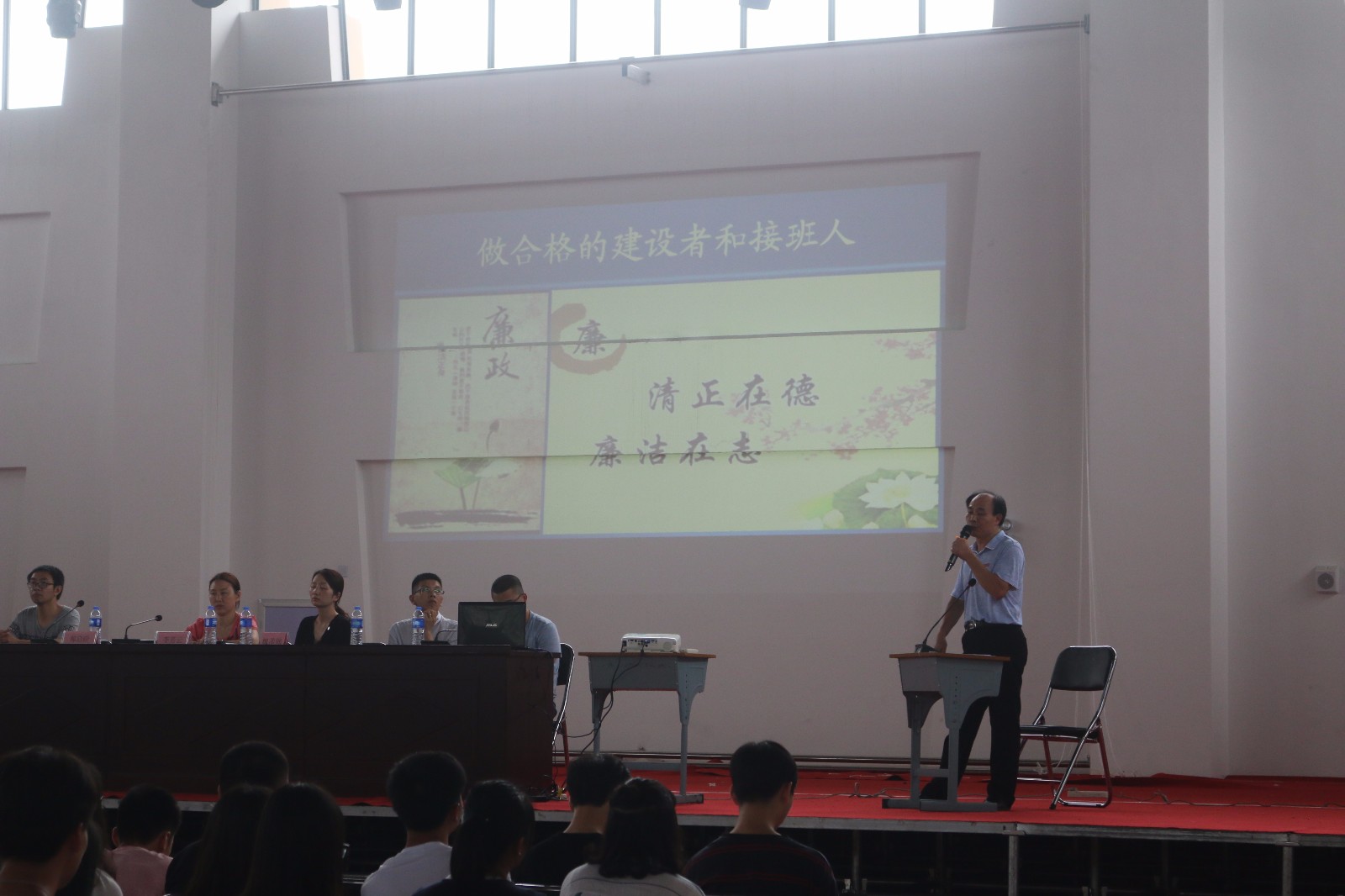 大会重温了焦裕禄、孔繁森、杨善洲、廖俊波等一批人民好公仆、党的好干部的廉政事迹,进一步激发广大学生诚信做人、干净做事。同时,通过近期“洁洁良辱华事件”的剖析,教育引导学生切实要弘扬主旋律、传播正能量,以自己的实际行动自觉践行社会主义核心价值观,做合格的建设者和接班人。