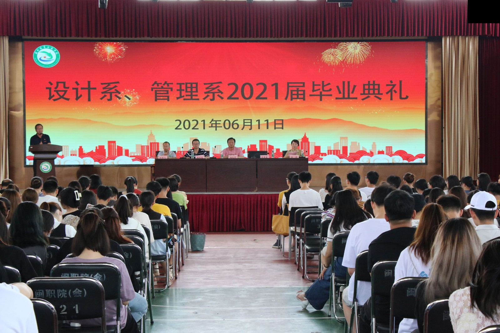 6月11日上午,闽北职业技术学院设计系和管理系2021年毕业典礼在体育实训中心举行,设计和管理系联合党总支书记詹茂光主持,闽北职业技术学院党委书记谢友平、副院长郑需勇、设计系兼管理系主任陈婷等领导出席。