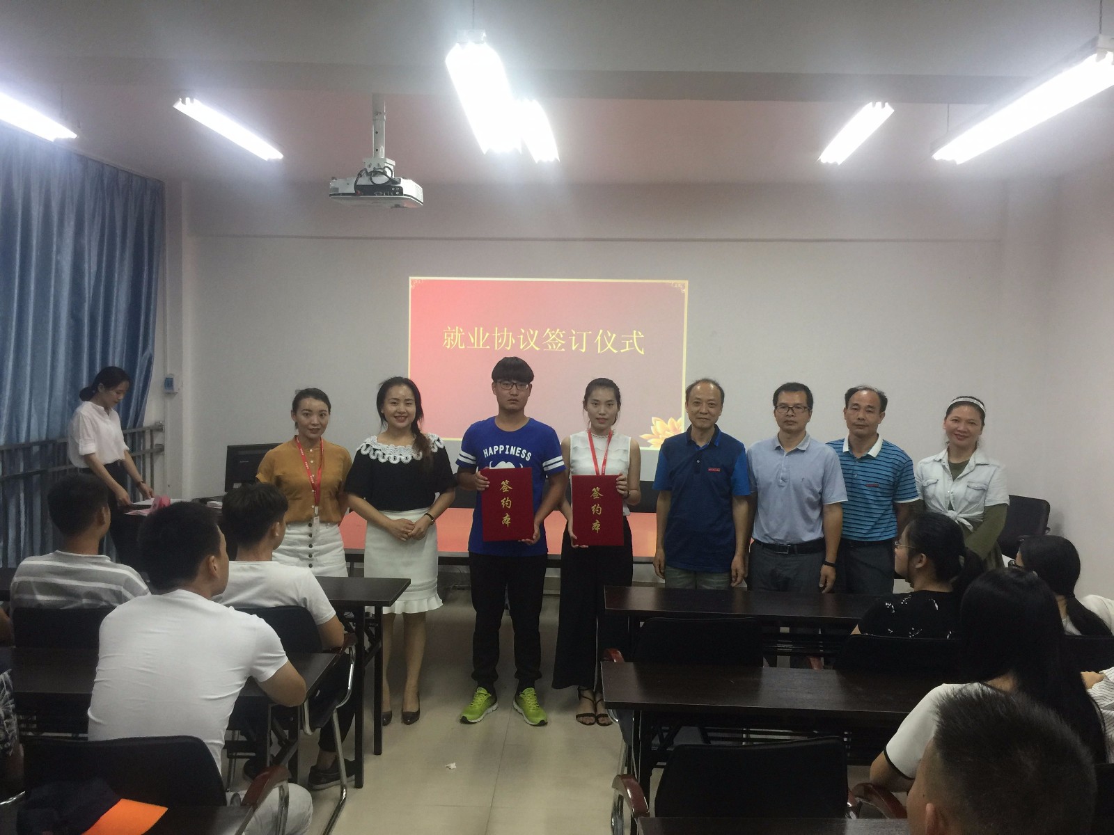 9月14日上午,信息与工程系和福州安博榕信息科技有限公司在我院举行了2017级计算机应用技术(软件开发方向)专业学生就业协议签订仪式。学院党委副书记陶金辉出席签字仪式。陶金辉副书记在仪式上致辞,安博榕信息科技有限公司常务副总经理陈黎黎作了讲话。最后,同学们与福州安博榕信息科技有限公司签订了就业协议。