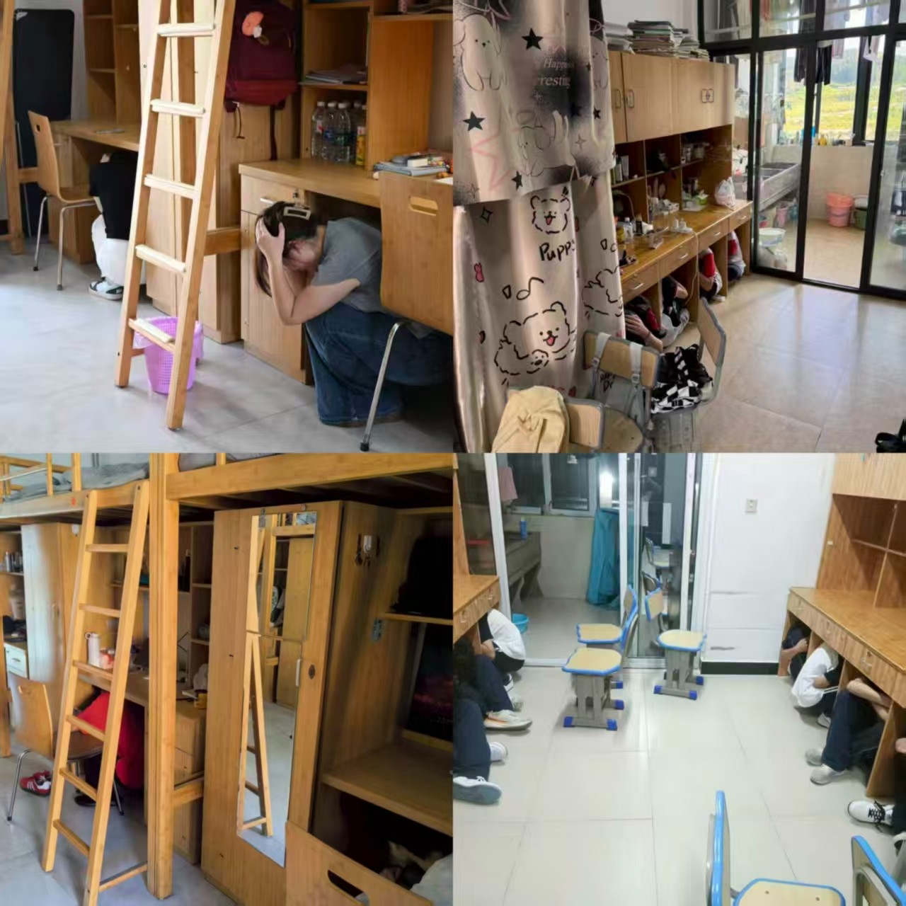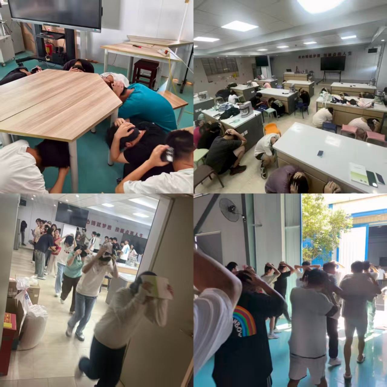 演练模拟突发地震情境,场景覆盖教学楼、宿舍楼、实验(训)室等地,近五千名师生参加演练。警报响起,全体师生迅速实施科学避震,随后在指挥组统一引导下,按预定路线快速、有序疏散至指定安全区域。