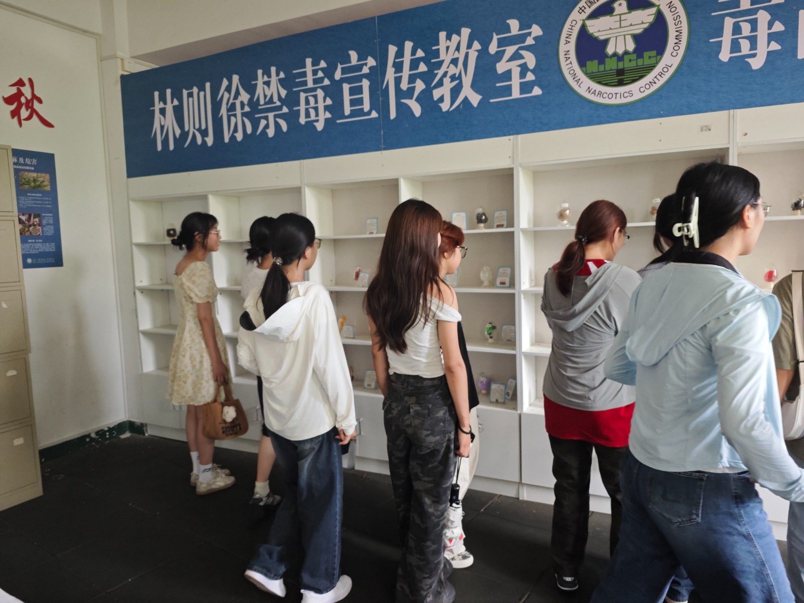各系组织学生前往林则徐禁毒室参观学习。在展区内,通过图文展板、仿真毒品模型、禁毒案例视频等丰富载体,学生们直观了解了毒品的种类、危害以及我国当前的禁毒形势。