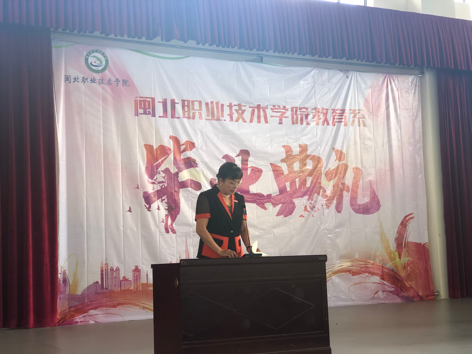 2019年6月14日,闽北职业技术学院教育系毕业生典礼在体育实训中心隆重举行。学院院长黄亚惠、院党委副书记陶金辉、系部党政领导、教职工和全体2019届毕业生共同参加毕业典礼,本次毕业典礼由教育系党总支副书记邱海松主持。