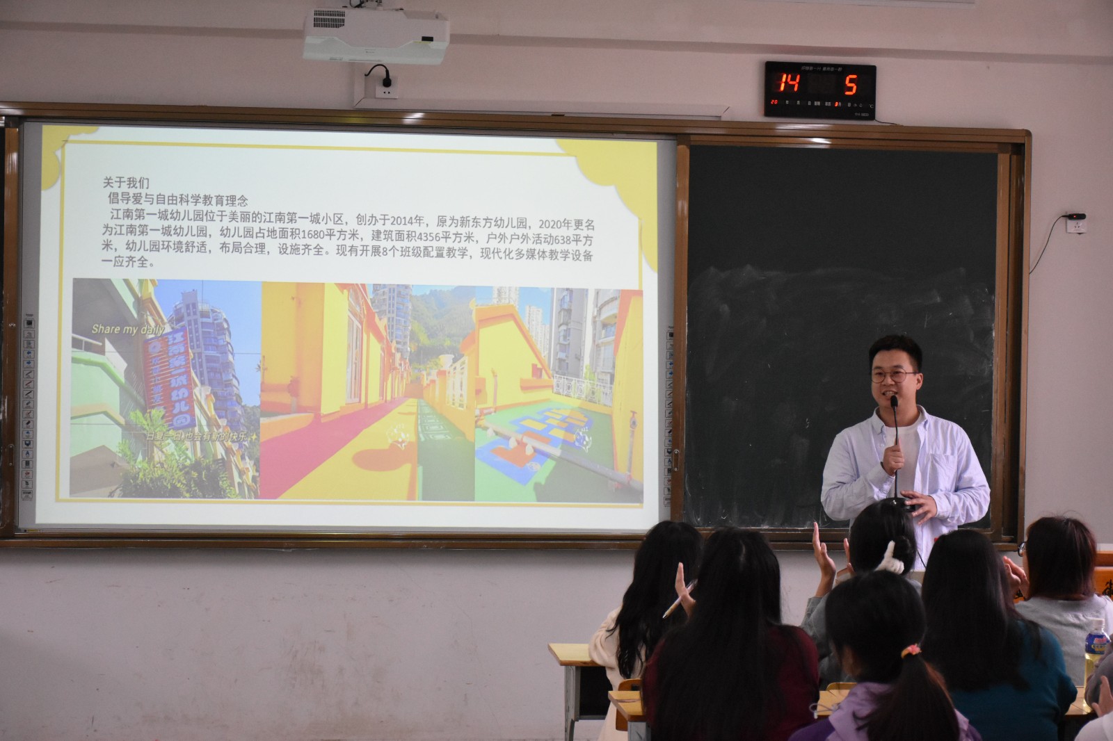 为做好毕业生实习就业工作,5月25日下午,教育系于慎思楼405、406开展了“学前教育毕业生企业宣讲会”,炫舞朝阳艺术中心、蒲公英舞蹈艺术中心、江南第一城幼儿园等3家企业参加了宣讲。