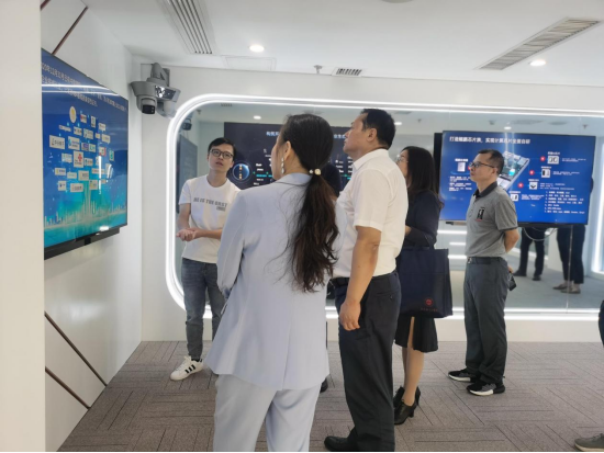 调研期间,杨志坤总经理带领大家参观了鲲鹏大厦27楼的展厅,谢友平书记、张金良主任等人认真观看、听取了华为相关产品的演示和讲解,并给予了充分的肯定。