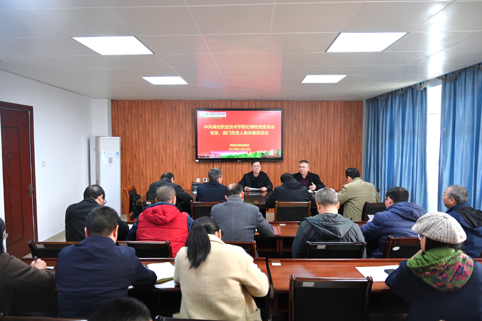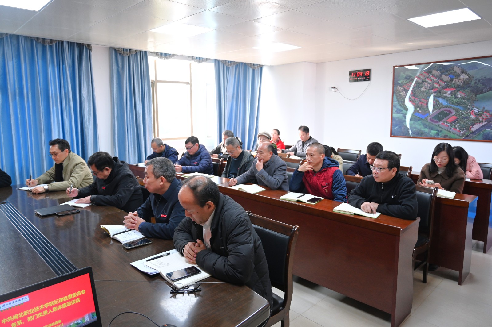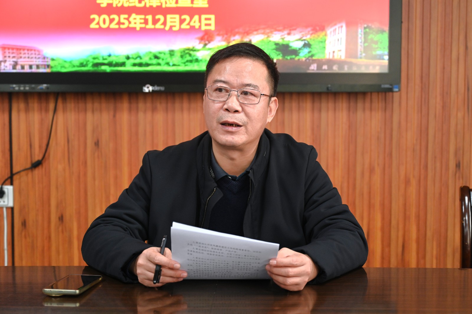 2025年12月24日,上午在学院行政楼501会议室,学院纪委召开2025年各系、部门(处室)负责人集体廉政谈话。学院纪委书记,各党总支书记,系、部门(处室)负责人、纪律检查室全体人员参加会议。会议由学院纪委副书记、纪律检查室负责人王金土主持。