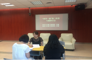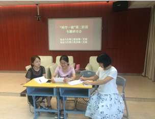 2016年9月19日下午,食品与生物工程系第二党支部全体党员在实训楼一体化教室召开了“两学一做”学习教育第二专题研讨会。本次学习研讨的主题是:“坚守纪律底线、培养高尚情操”。会前,全体党员认真研读《中国共产党章程》、《中国共产党廉洁自律准则》、《中国共产党纪律处分条例》、《习近平总书记系列重要讲话读本(2016年版)》等书目,并做好学习笔记。会上,党支部书记黄妍作重点发言,其他党员互动交流,结合各自工作讨论了作为高职教师如何做到坚守纪律底线,培养高尚情操。