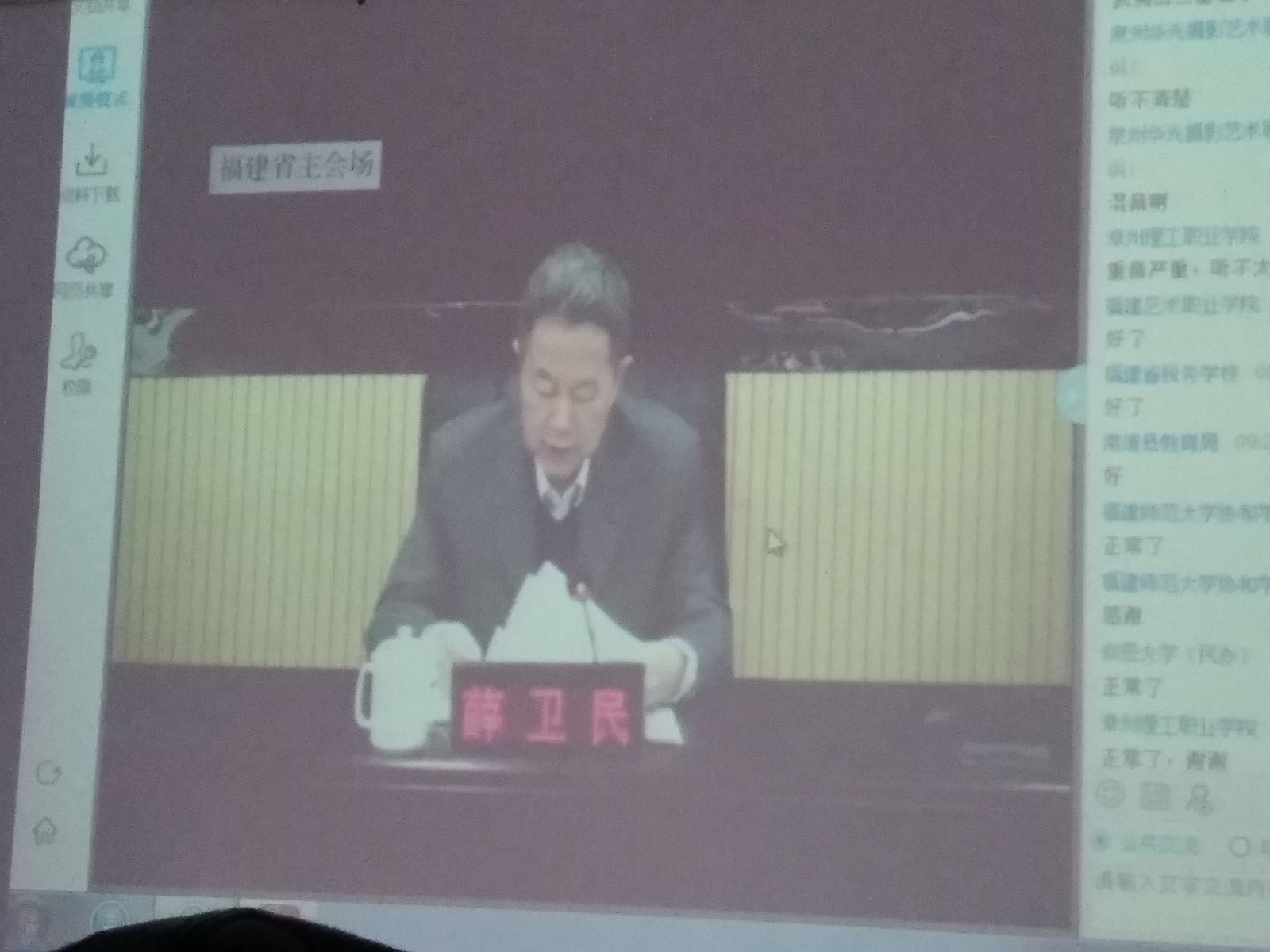 2017年2月28日上午,我院系部全体党总支负责人、学生科科长、辅导员参加了院组织观看的福建省2017年学生资助工作视频会议。视频会议分三部分内容,第一部分为各地市代表作学生资助工作交流汇报,我市教育局林元树副局长代表南平地区做了交流发言。第二部分为省资助中心主任张春生同志作工作报告。第三部分是省政协副主席、省教育厅副厅长薛卫民作工作报告。薛副厅长从2016年全省资助工作回顾总结、认清形势强化责任担当、不忘初心继续做好资助工作三个方面作了报告,报告目标明确、措施有力。薛副厅长强调要立德树人,要精准资助,并号召各级各部门要打赢教育脱贫攻坚战,以优异成绩迎接党的十九大的召开。参加本次视频会议我系领导有:总支常务副书记郑启阶同志,学生科科长胡建辉同志等。