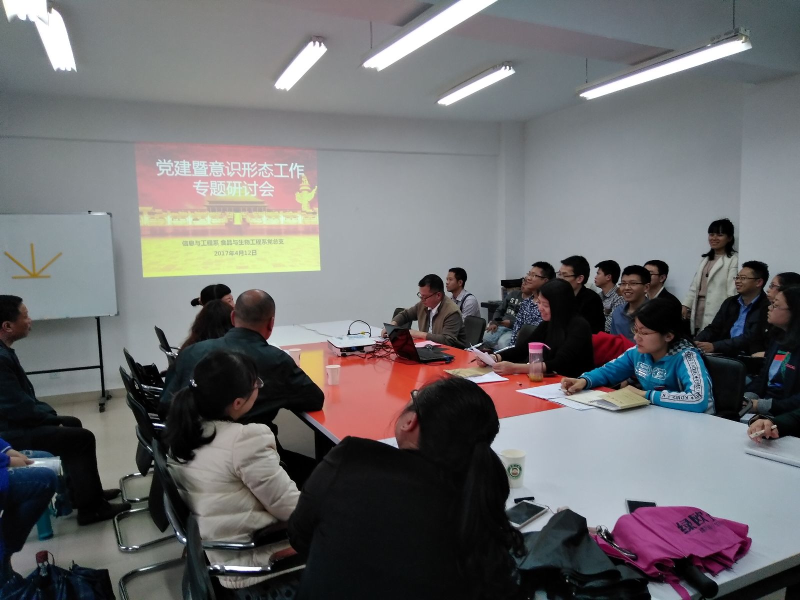 4月12日下午,我系召开党建暨意识形态工作专题研讨会,会议由系总支副书记郑启阶主持,全体教职工参加了会议。会上,郑副书记传达了我院2017年度党建暨意识形态工作会议的精神,对我系2017年的党建工作及意识形态工作作了安排部署,并从“切实加强领导组织、把握正确方向、维护网络意识形态安全、加强重点领域的意识形态工作、做好意识形态领域重大问题的处理及加强意识形态工作队伍建设”等六个方面强调了2017年我系意识形态工作的重心和抓手,要求全体教职工切实履行好职责,共同做好我系的党建及意识形态工作。
