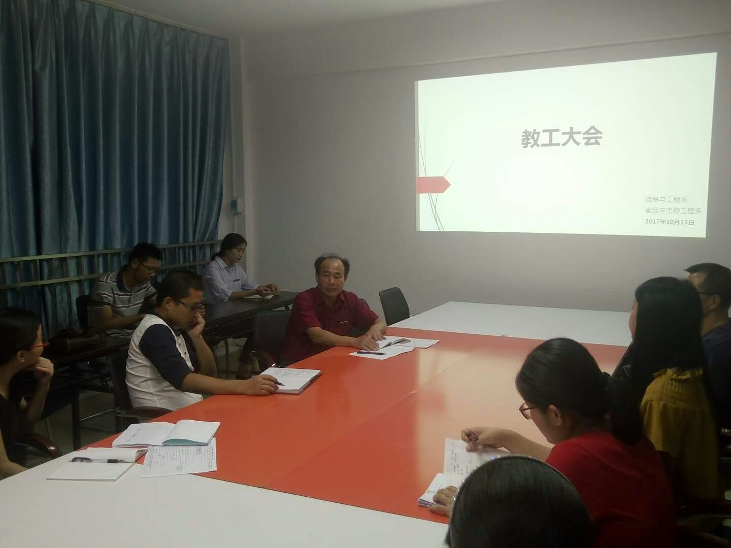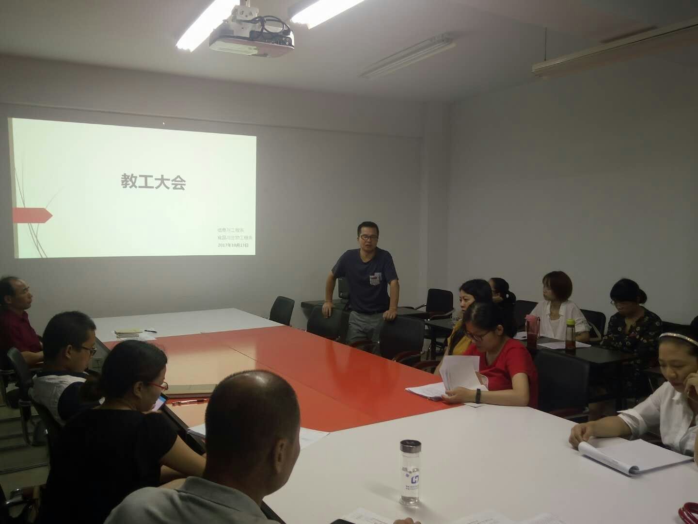 10月13日下午,我系召开了预评估整改落实及迎接南平市文明学校检查教工大会,系主任张金良主持会议。张主任对我院二轮评估前的预评估整改方案进行了详细认真的解读,同时对二轮评估下一环节冲刺阶段的工作进行了周密部署,对课程说课及专业剖析作了重点安排,要求全体教师要按学院及我系的时间节点保质保量完成每一项任务。