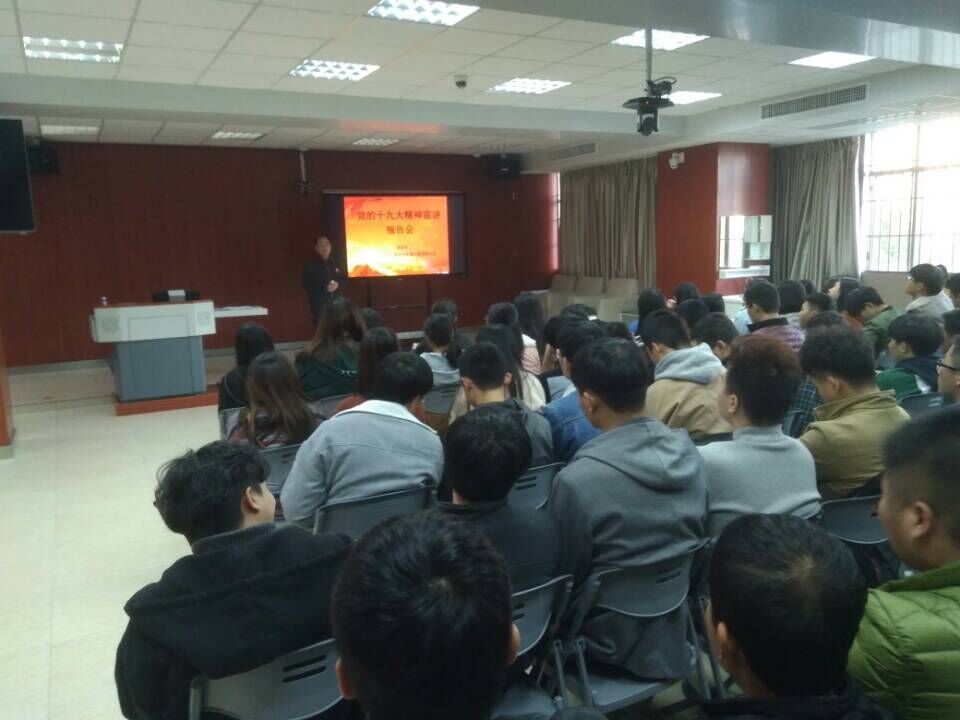 12月7日下午,我系召开了党的十九大精神宣讲报告会,系全体学生参加,系常务副书记郑启阶作了宣讲。他从十九大大会主题、历史成就、习近平新时代中国特色社会主义思想、关于两个一百年奋斗目标的战略部署等十个方面进行了宣讲,号召全体同学要以时不我待、只争朝夕的精神,奋力走好新时代的长征路。通过宣讲,同学们对党的十九大精神有了更深刻、更全面的认识,纷纷表示要立足当下,好好读书,回报父母,报效社会。