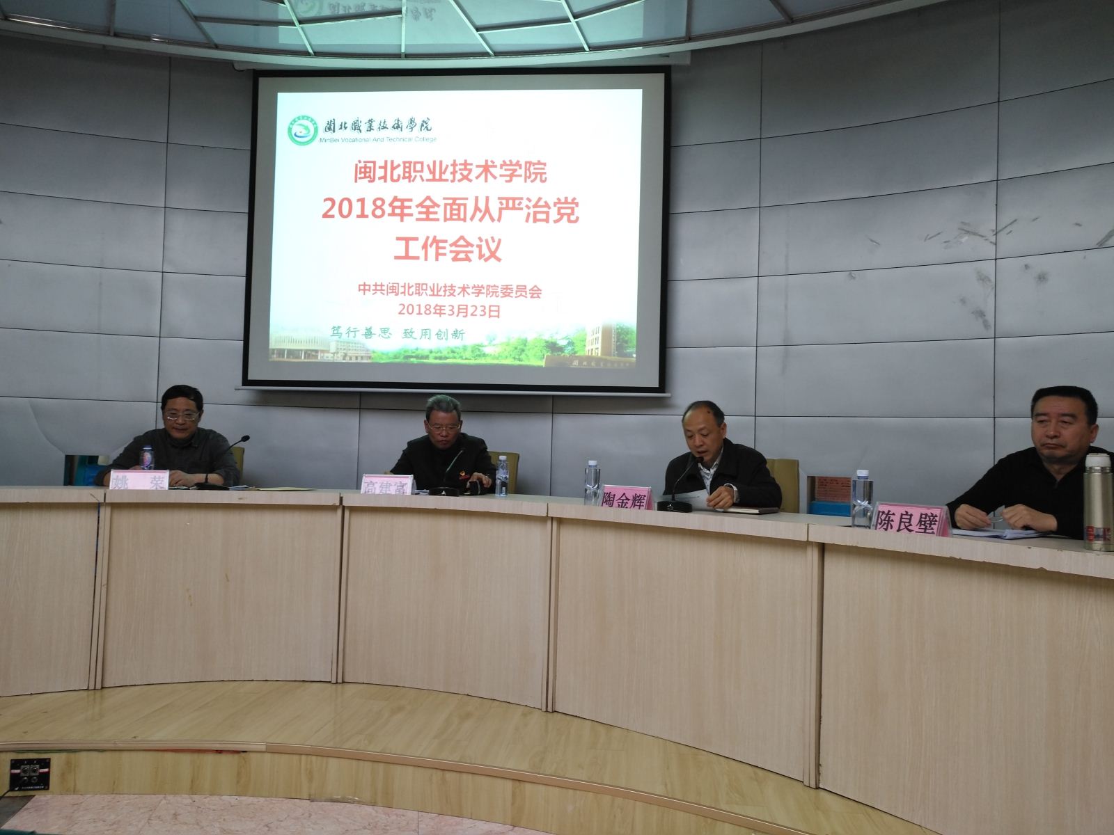 2018年3月23日下午,我院召开了2018年全面从严治党工作会议。会议由陶金辉副书记主持,纪委姚荣书记及院党委高建富书记作了重要讲话。姚书记从“强化压力传导,推动两个责任落实”“坚持挺纪在前、把握运用四种形态”两大方面回顾总结了2017年我校党风廉政建设工作开展情况,同时对我院2018年党风廉政建设工作进行了部署,要求各部门要切实做好今年的党风廉政建设工作,加强党内监督、严肃党内政治生活,做忠诚、担当、清廉、干净的好干部。