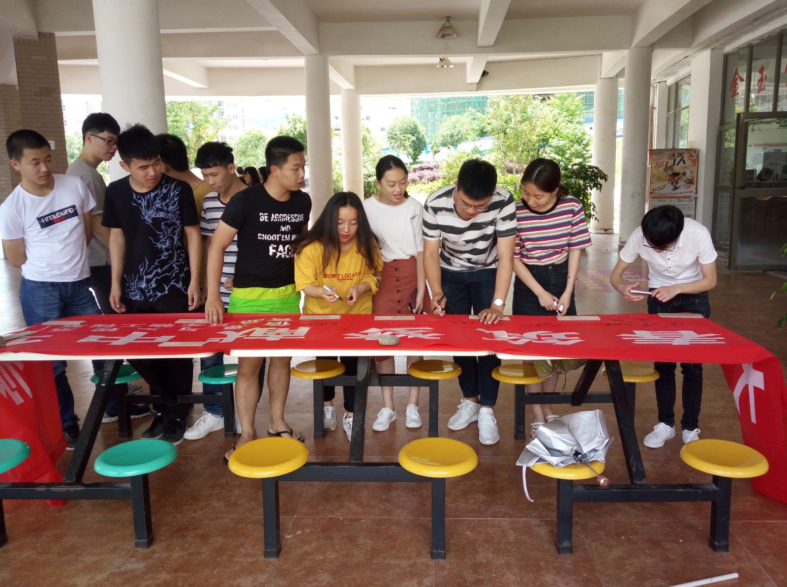 本次系列主题活动主要有:1、组织志愿者开展“发扬志愿者精神,爱护环境”的九峰山保洁活动;2、各班团支部组织召开“学习党的十九大会议精神”主题班会;3、利用互联网新媒体QQ、微信、微博、贴吧等平台,开展弘扬“五四”精神爱国主义教育等内容的宣传;4、开展“学思践悟十九大,青春筑梦献中华”横幅签名活动。