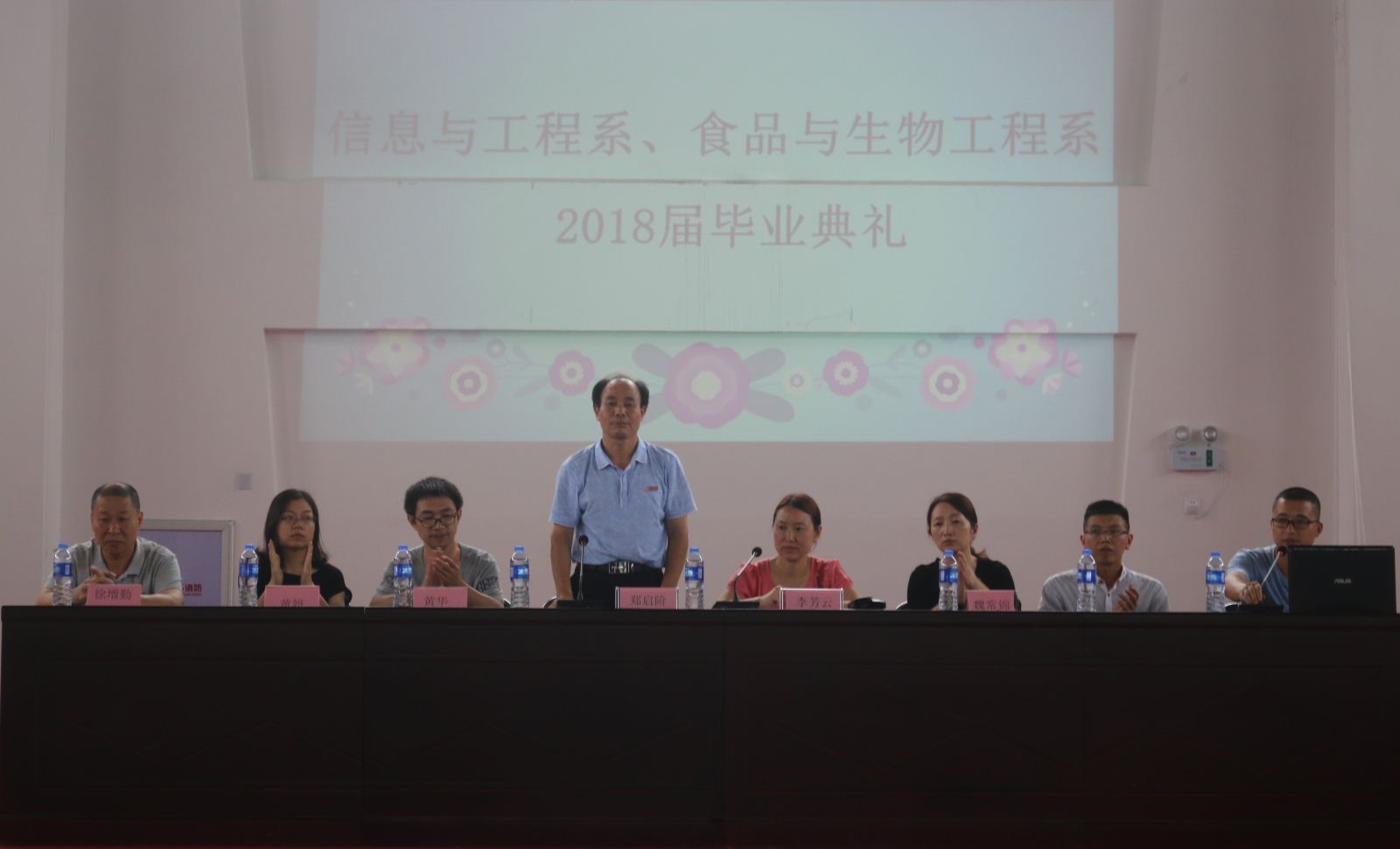 6月6日下午,我系在新落成的体育实训中心召开了2018届学生毕业典礼。系领导、班主任、学生科成员及全体学生参加了典礼。