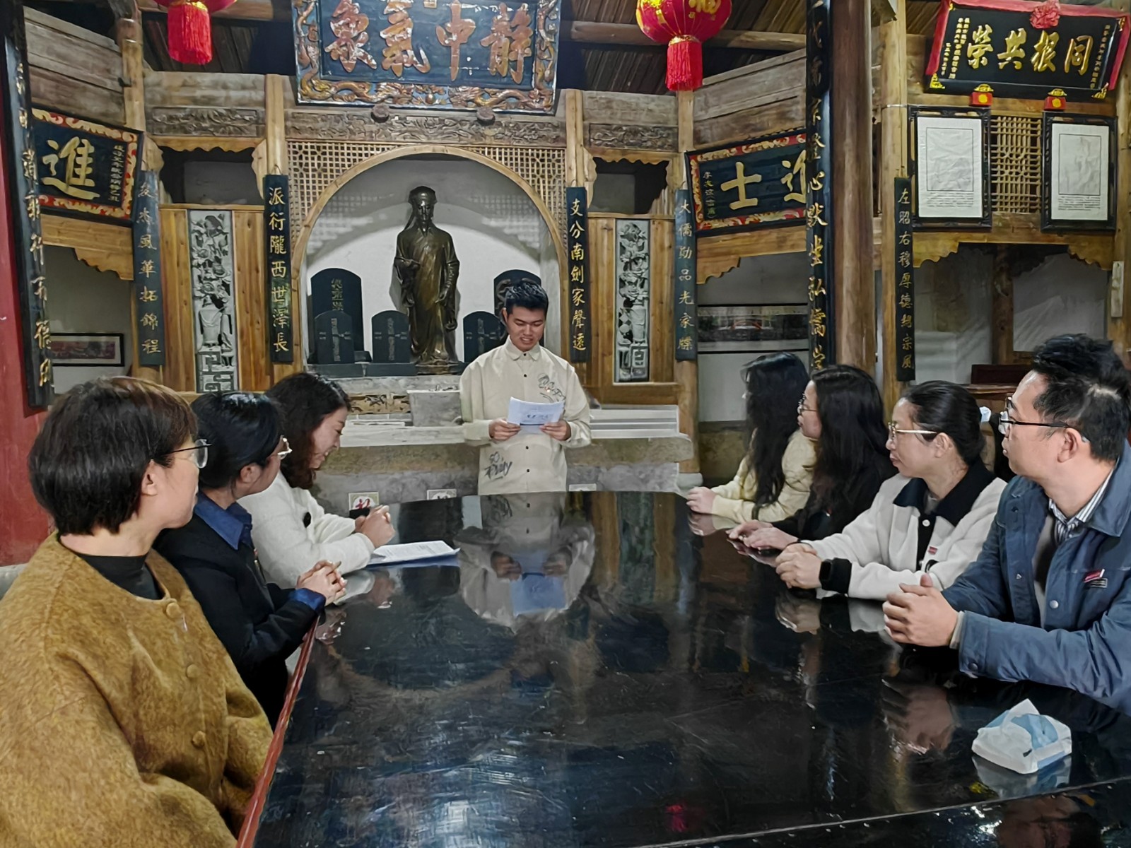 活动伊始,支部党员在讲解员的引导下实地参观李延平祠,深入了解李侗的生平事迹与理学思想,细细感悟先贤 “潜心治学、求真务实、甘于奉献” 的精神特质,在沉浸式体验中领略闽北理学文化的独特魅力,进一步厚植文化自信,为坚守教育初心、铸牢育人之魂汲取传统文化养分。
