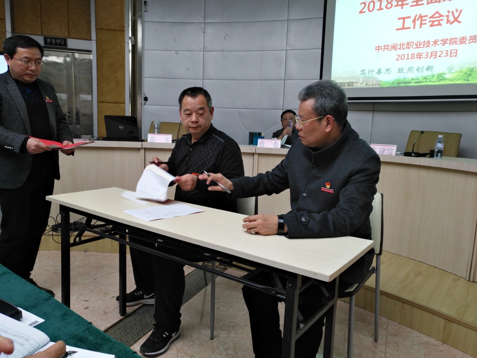 2018年3月23日下午,我院召开了2018年全面从严治党工作会议。会议由陶金辉副书记主持,纪委姚荣书记及院党委高建富书记作了重要讲话。姚书记从“强化压力传导,推动两个责任落实”“坚持挺纪在前、把握运用四种形态”两大方面回顾总结了2017年我校党风廉政建设工作开展情况,同时对我院2018年党风廉政建设工作进行了部署,要求各部门要切实做好今年的党风廉政建设工作,加强党内监督、严肃党内政治生活,做忠诚、担当、清廉、干净的好干部。