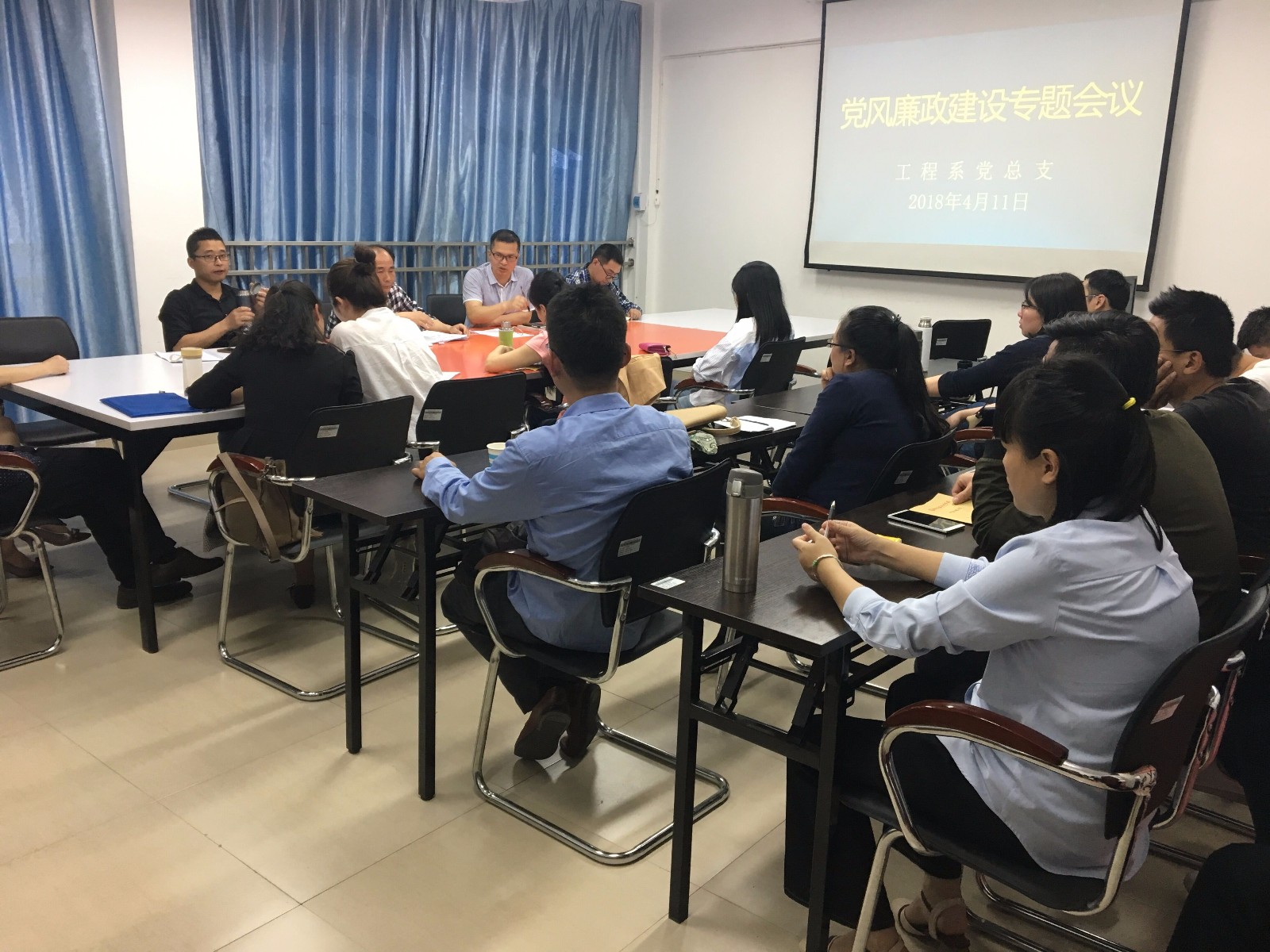 为深入学习贯彻十九大会议精神,进一步强化党总支党内监督,4月11日下午,我系召开了党风廉政建设专题会议,全体教职工参加了会议。
