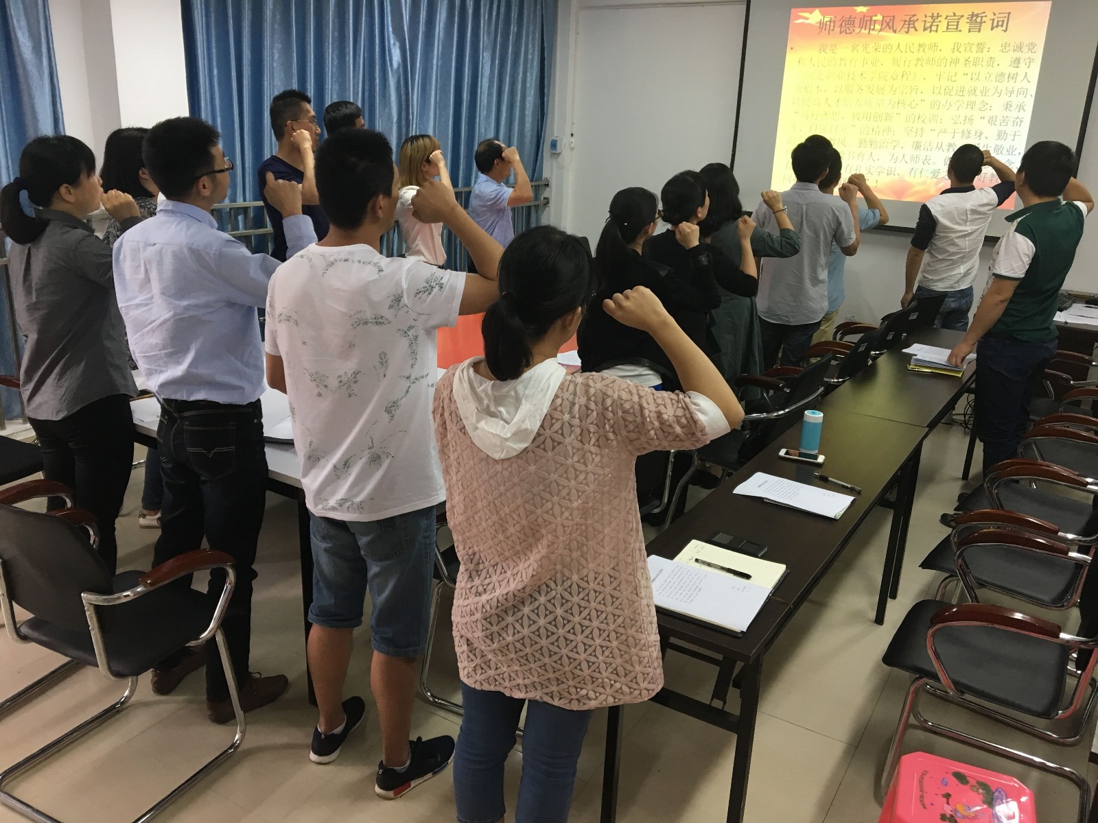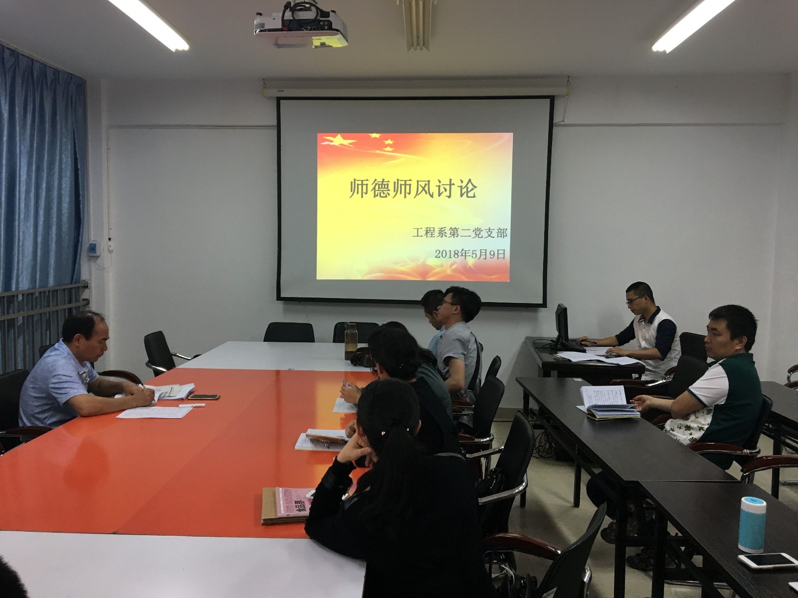 2018年5月9日,工程系第二党支部召开师德师风承诺宣誓大会。支部全体教师党员及全体班主任参加了会议。