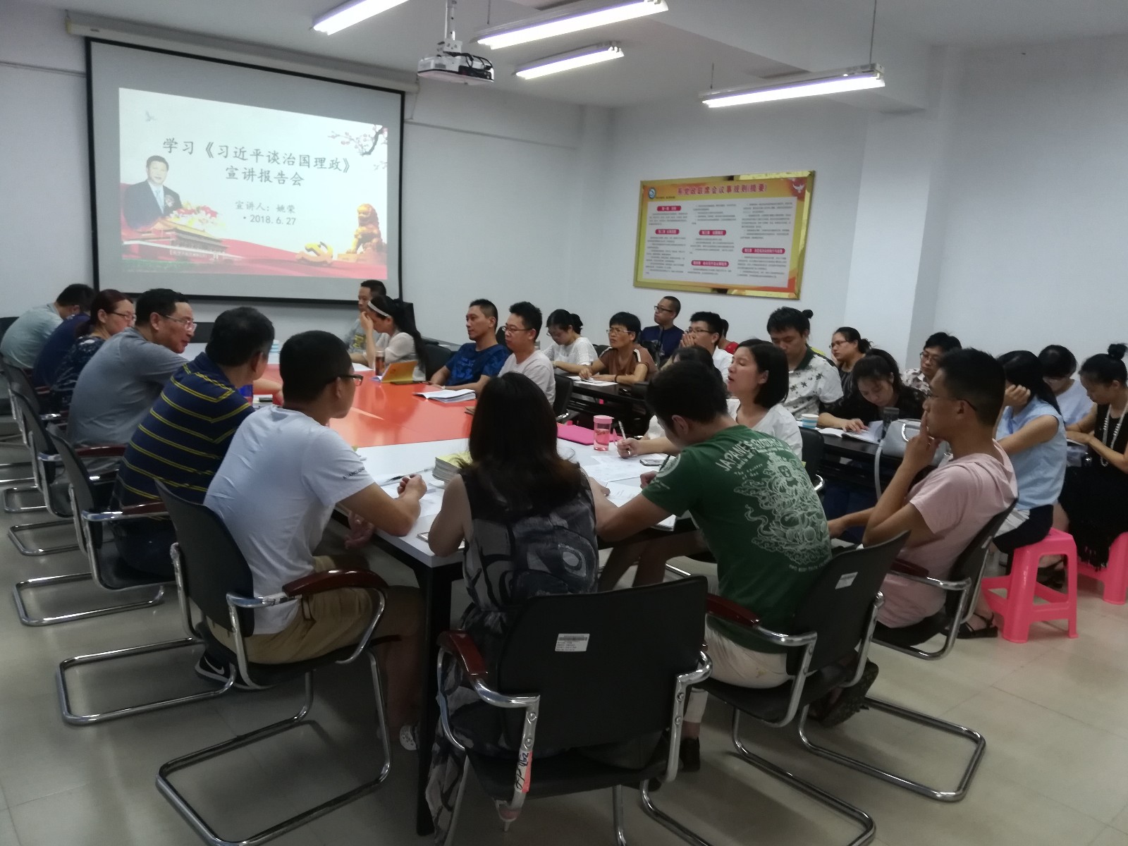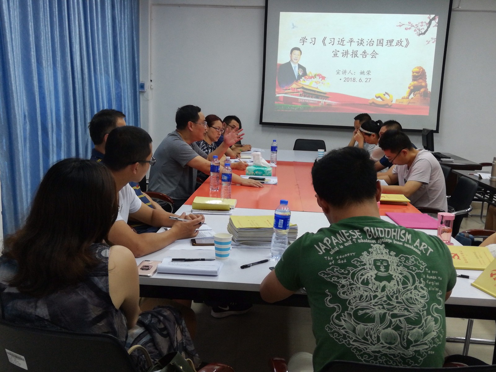 为深入学习领会习近平新时代中国特色社会主义思想,深入学习贯彻党的十九大精神,6月27日下午,系总支举行了学习《习近平谈治国理政》宣讲报告会。院纪委书记、系分管领导姚荣同志为系全体教职工作了宣讲。会议由系总支书记李芳云同志主持。