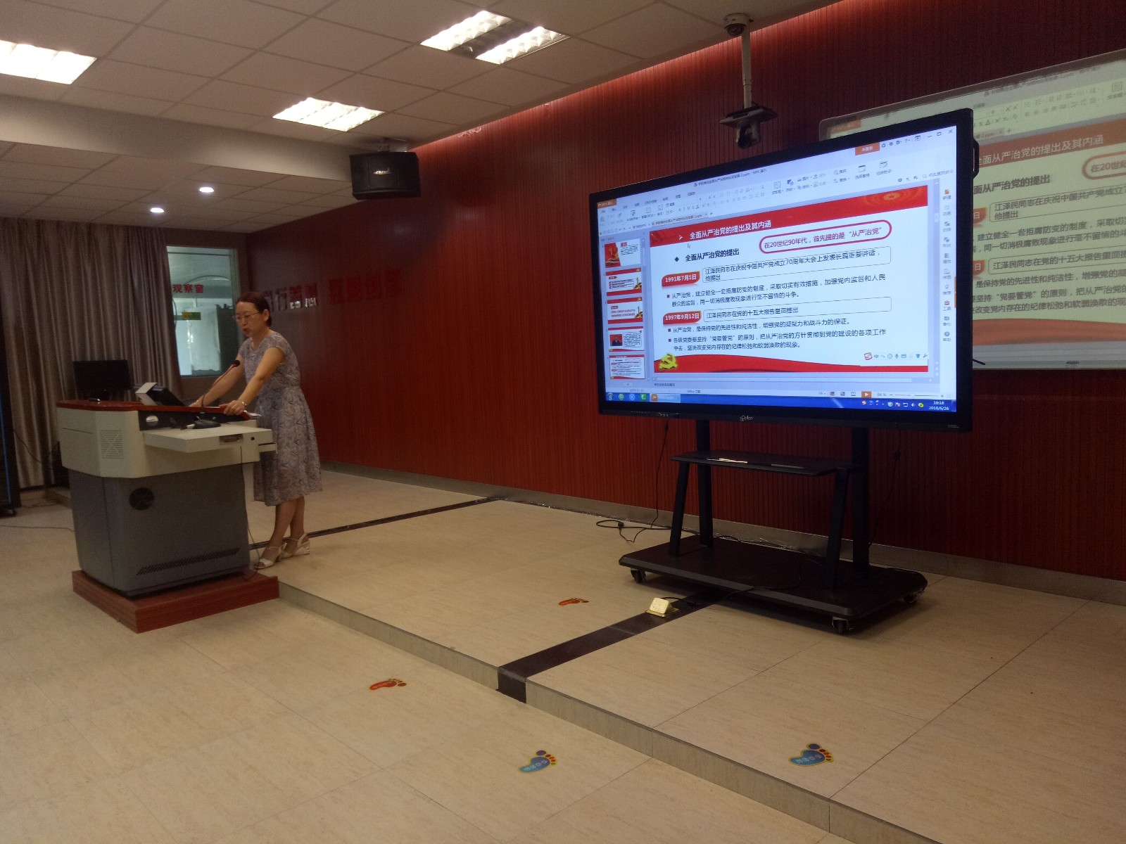 李书记从深刻认识新时代全面从严治党的重要意义及其显著成效、积极推动全面从严治党向纵深发展、不断深化总结全面从严治党规律性认识三个方面进行了深入浅出的讲解,并结合具体的典型案例,将从严治党向纵深发展的必要性、显著性、深刻性向同学们进行生动的宣讲。
