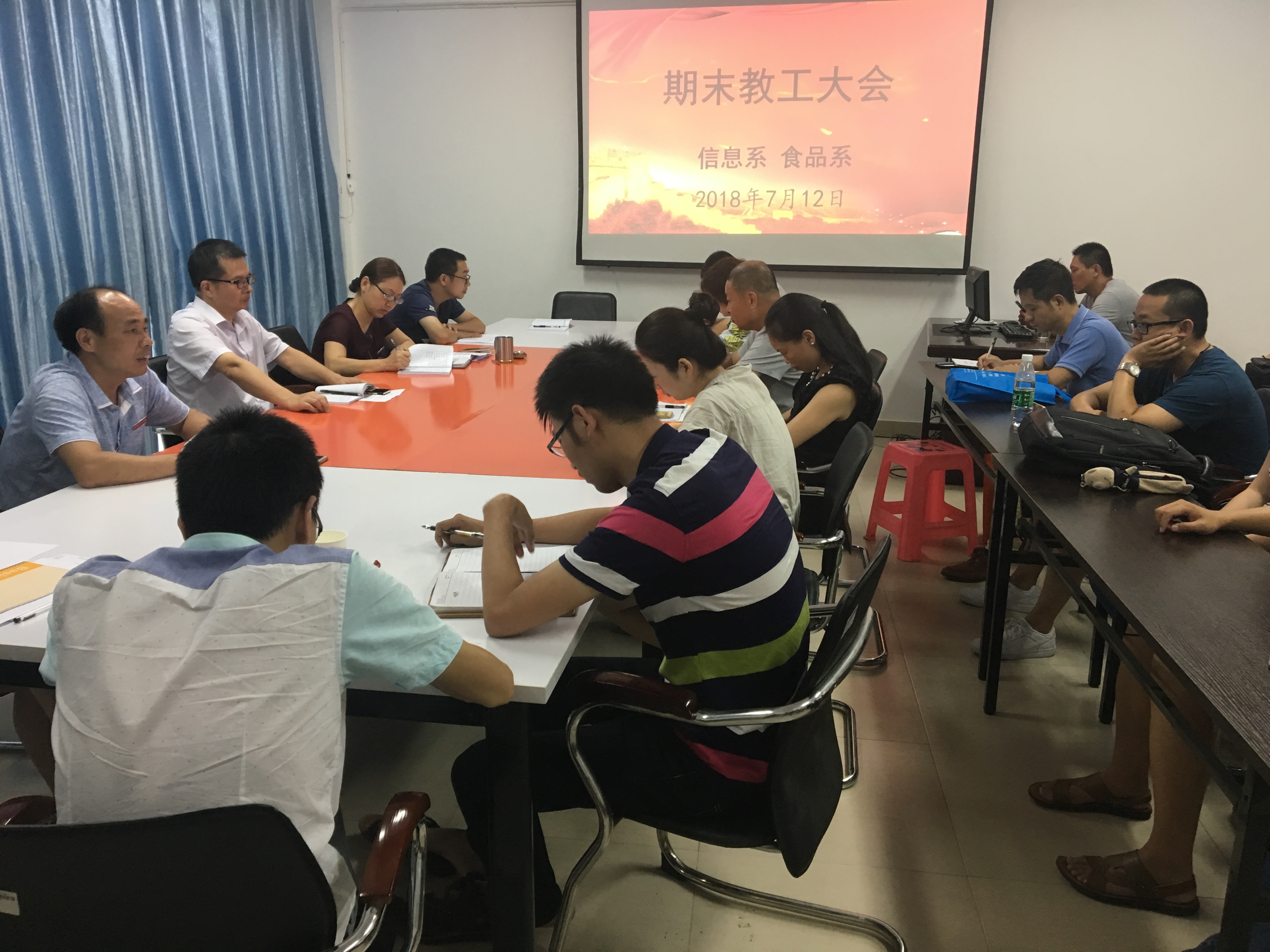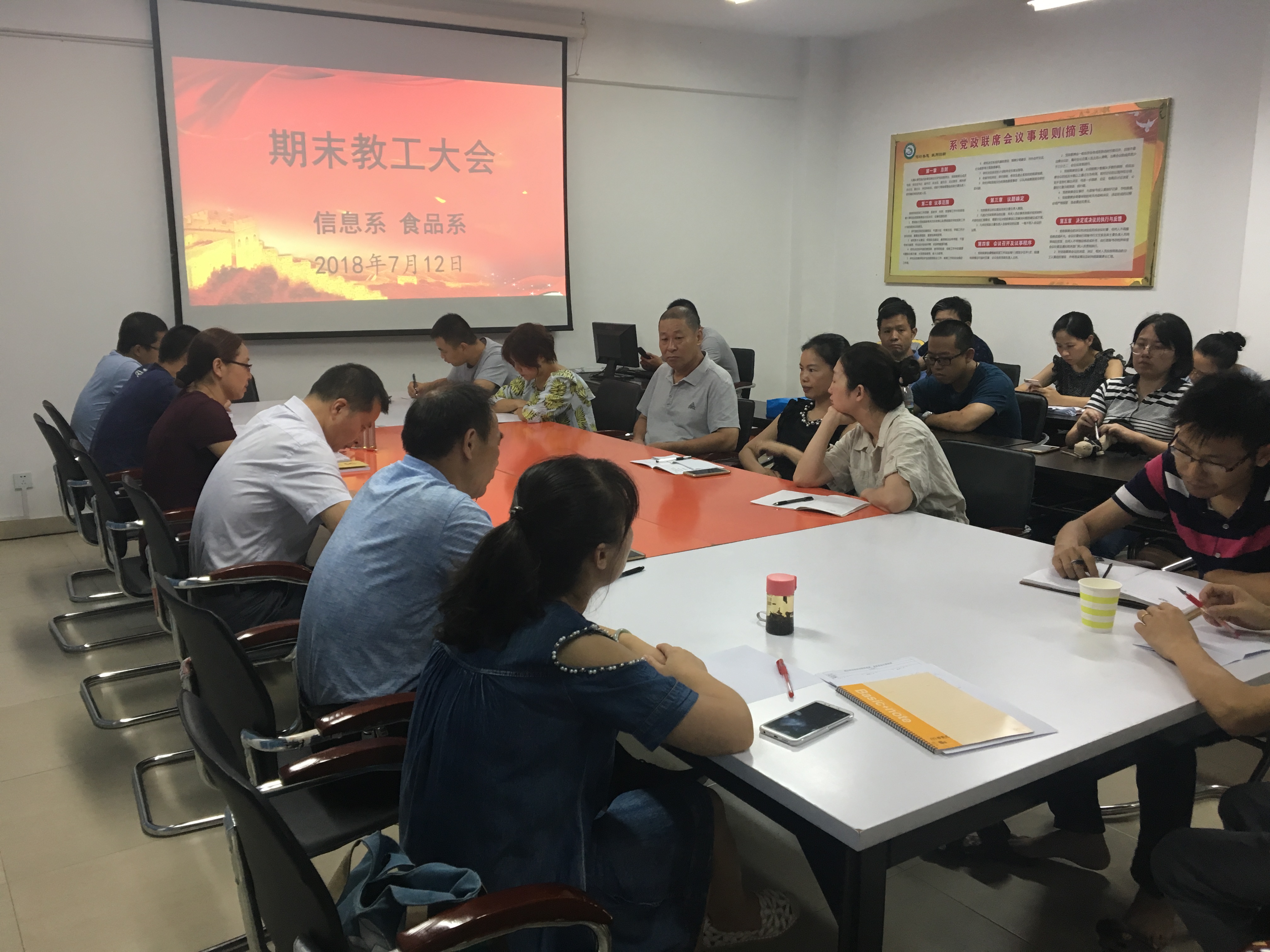 7月12日下午,我系召开了期末教工大会,全体教职工参加了会议。会议回顾总结了半年来系的思想政治工作,并对下学期新生班主任的工作进行了安排。系主任张金良部署期末工作并对下学期期初的工作进行了安排,要求全体教职工要做好本职工作,认认真真按期完成院、系安排的各项任务。最后,党总支书记李芳云进行了期末安全工作及意识形态工作的部署,要求广大教职工要切实增强自我保护意识,落实好学生的离校安全工作及暑期的人身安全工作,确保师生平安离校、平安返校。