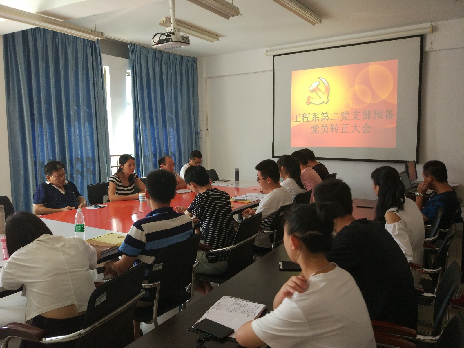 2018年7月4日,工程系第二党支部在行政楼407室召开预备党员转正大会。参加此次会议的有工程系第二支部正式党员、预备党员,会议由支部书记胡建辉同志主持。
