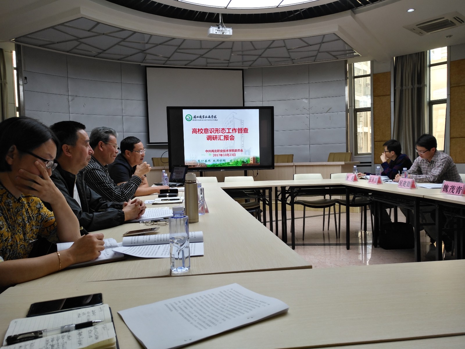 10月23日下午,南平市市委宣传部副部长魏茂青一行到我院开展意识形态工作调研,院党委高建富书记主持了会议。高书记从落实主体责任牢牢把握高校意识形态工作领导权、把握思想状态牢牢掌握高校意识形态工作话语权、增强阵地意识牢牢掌握高校意识形态工作管理权三个方面进行了汇报。魏部长对我院意识形态工作表示肯定,要求我院在工作中要创新工作方法、加强宣传阵地建设,切实把高校意识形态工作落到实处。参加汇报会我系领导有常务副书记郑启阶、学生科长胡建辉等。