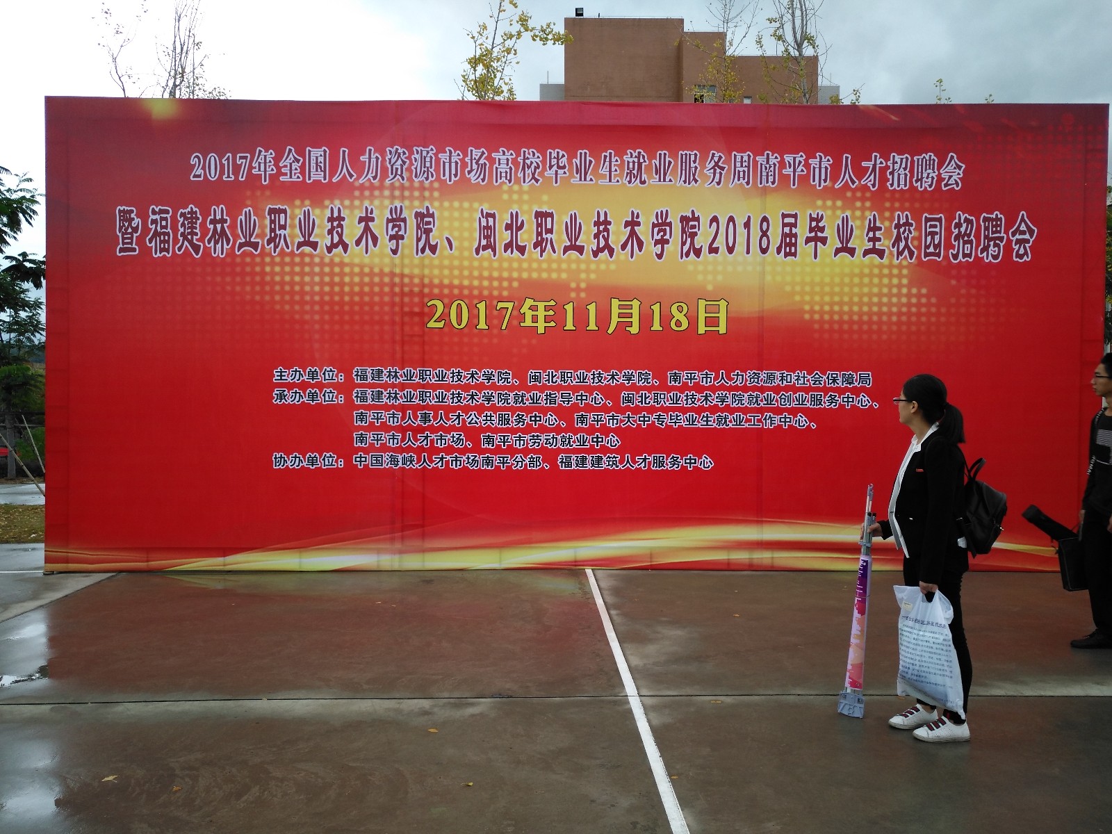 2017年11月18日上午,南平市2018届高校毕业生校园招聘会在福建林业职业技术学院江南校区如期举行。本届招聘会由我院与林职院主办,来自全省近280家企业参加了招聘会,场面壮观、热烈。同学们根据各自的专业到相应的用人单位进行咨询,有的递上个人简历或求职报告与用人单位进行交流沟通,现场气氛融洽,最终同学们收获满满,大多数同学都有与用人单位达成意向。系主任张金良、常务副书记郑启阶等参加了招聘会。