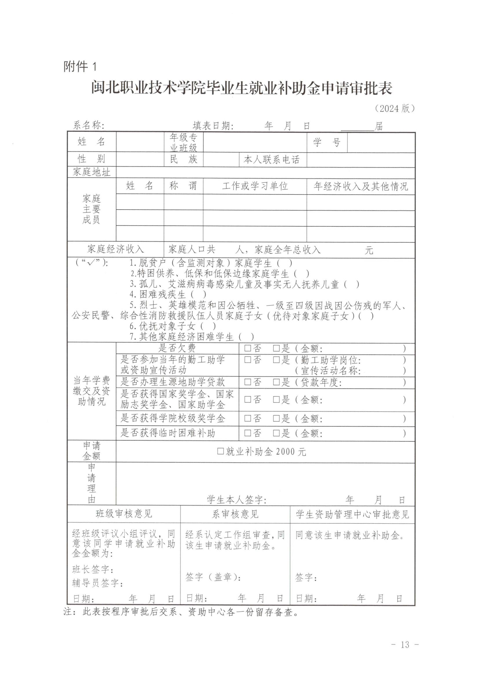 闽北职院〔2024〕18号 关于印发《闽北职业技术学院学费减免实施办法(修订)》等文件的通知