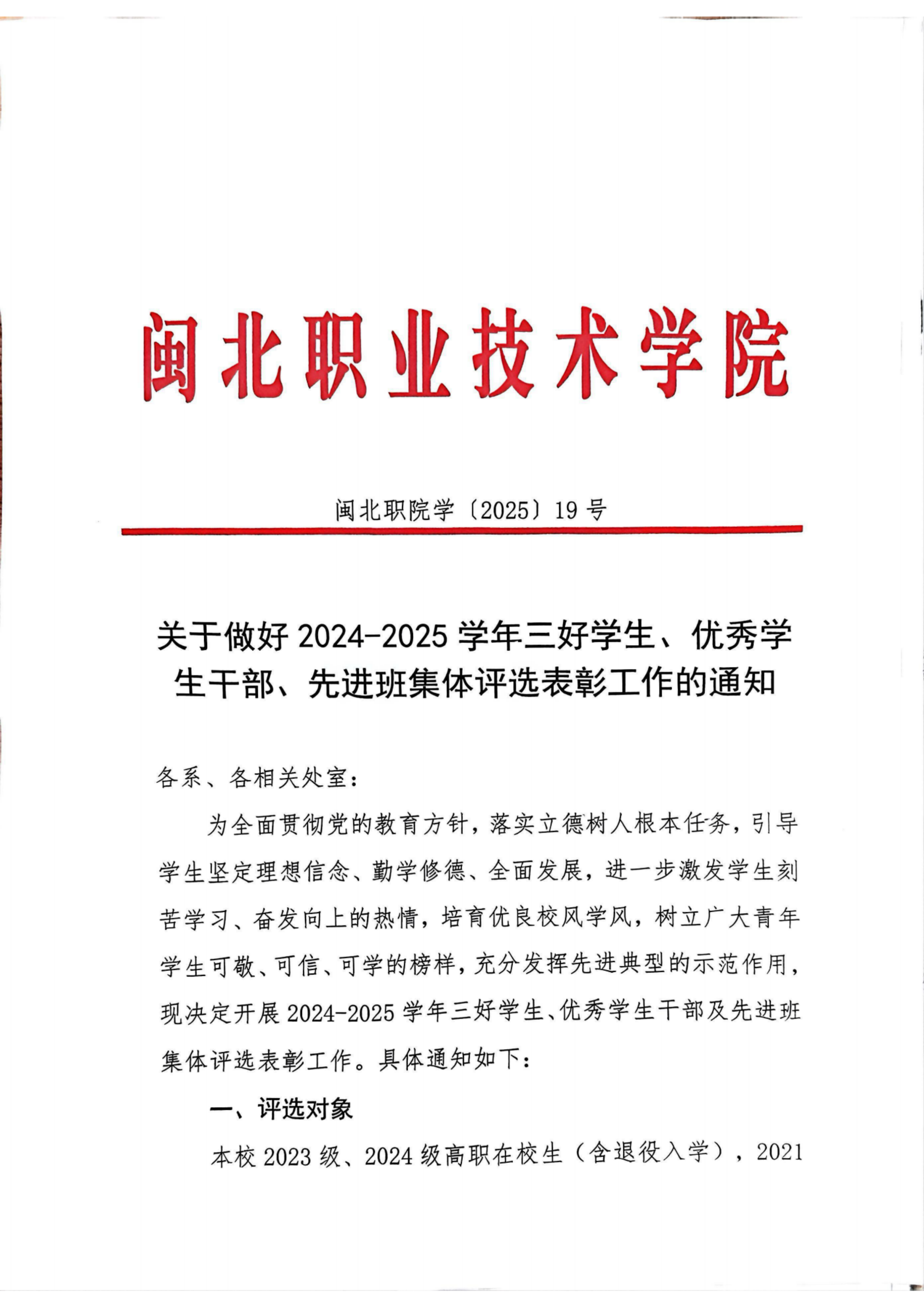 关于做好2024-2025学年三好学生、优秀学生干部及先进班集体评选表彰工作的通知
